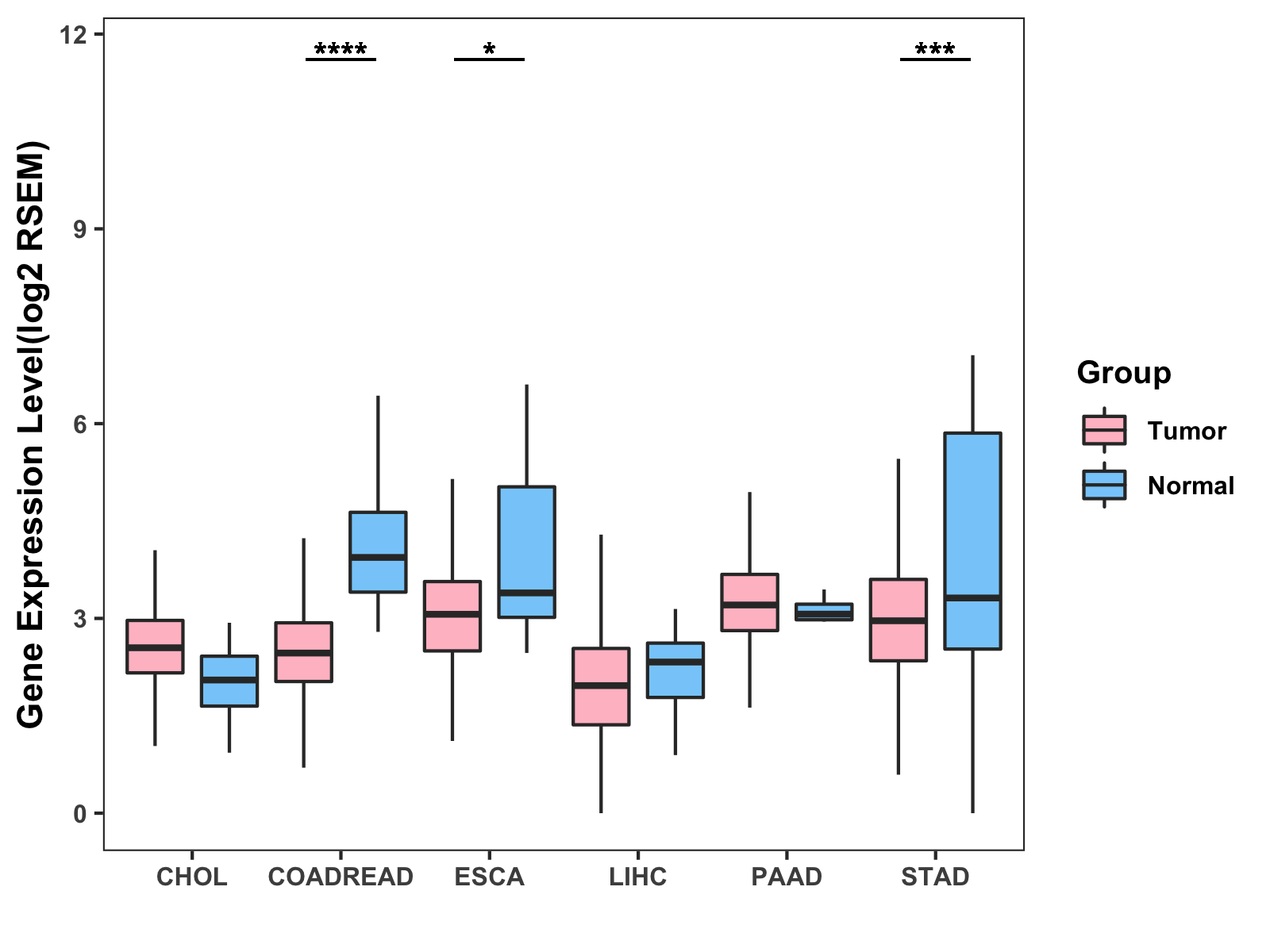 ( * : 0.01-0.05 , ** : 0.005-0.01 , *** : 0.0001-0.005 , **** : < 0.0001 ) |