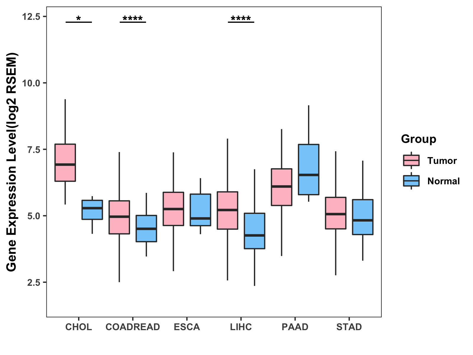 ( * : 0.01-0.05 , ** : 0.005-0.01 , *** : 0.0001-0.005 , **** : < 0.0001 ) |