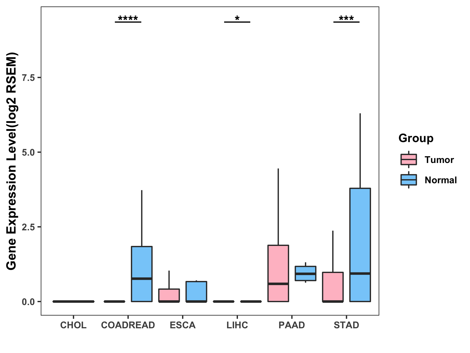 ( * : 0.01-0.05 , ** : 0.005-0.01 , *** : 0.0001-0.005 , **** : < 0.0001 ) |