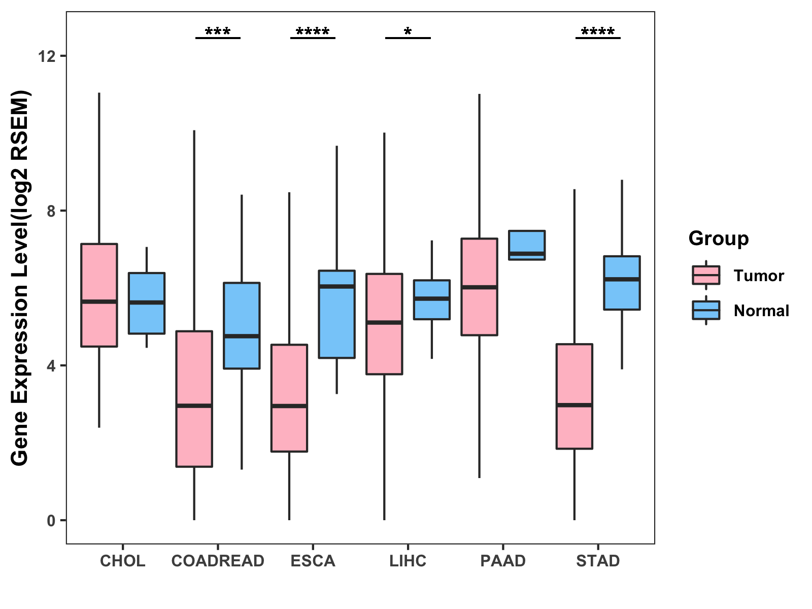 ( * : 0.01-0.05 , ** : 0.005-0.01 , *** : 0.0001-0.005 , **** : < 0.0001 ) |
