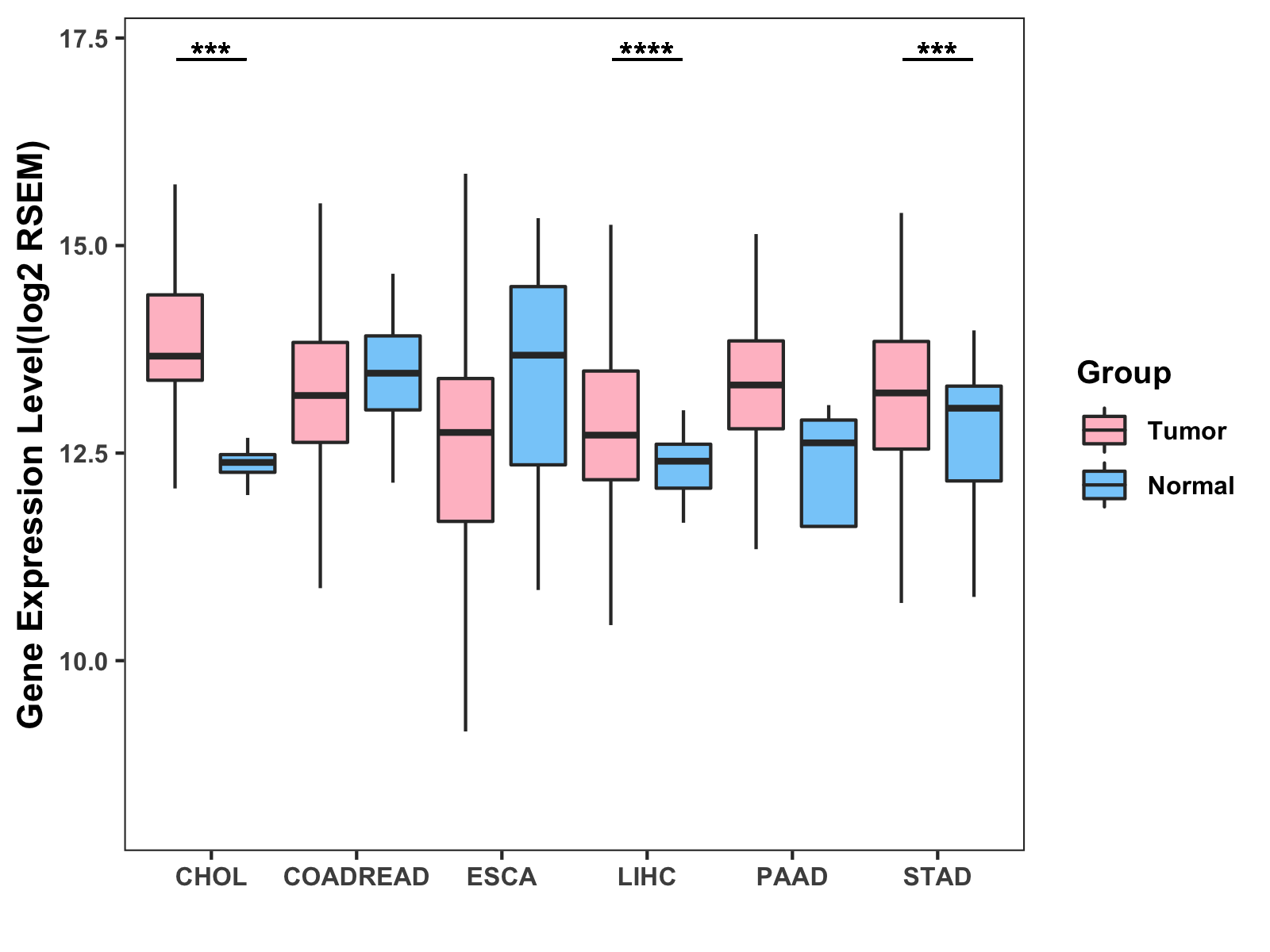( * : 0.01-0.05 , ** : 0.005-0.01 , *** : 0.0001-0.005 , **** : < 0.0001 ) |