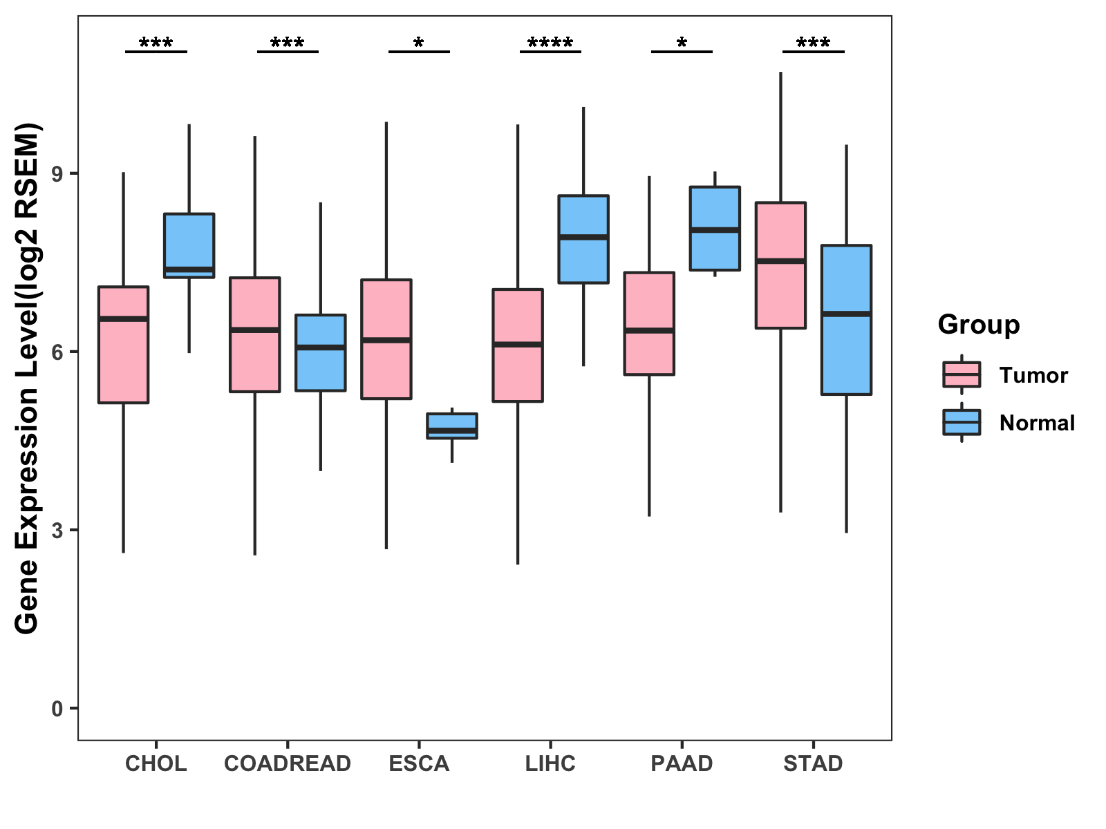 ( * : 0.01-0.05 , ** : 0.005-0.01 , *** : 0.0001-0.005 , **** : < 0.0001 ) |