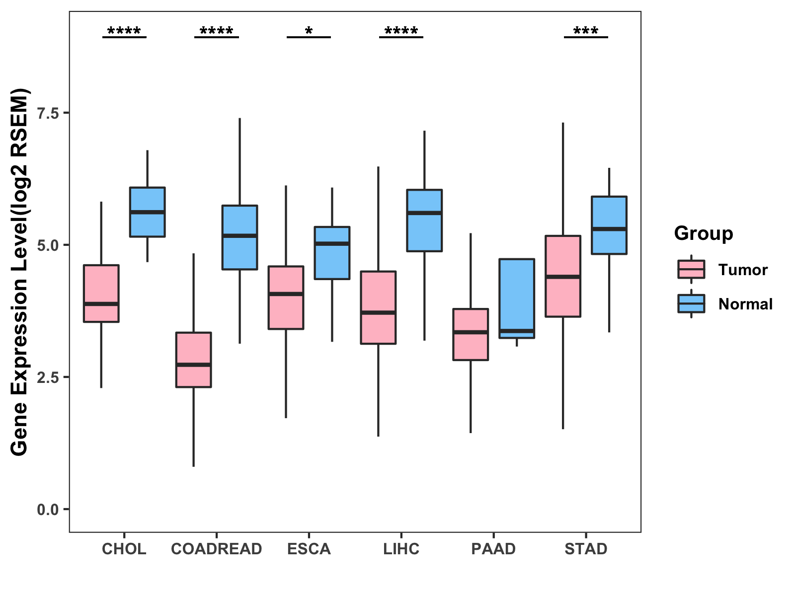 ( * : 0.01-0.05 , ** : 0.005-0.01 , *** : 0.0001-0.005 , **** : < 0.0001 ) |