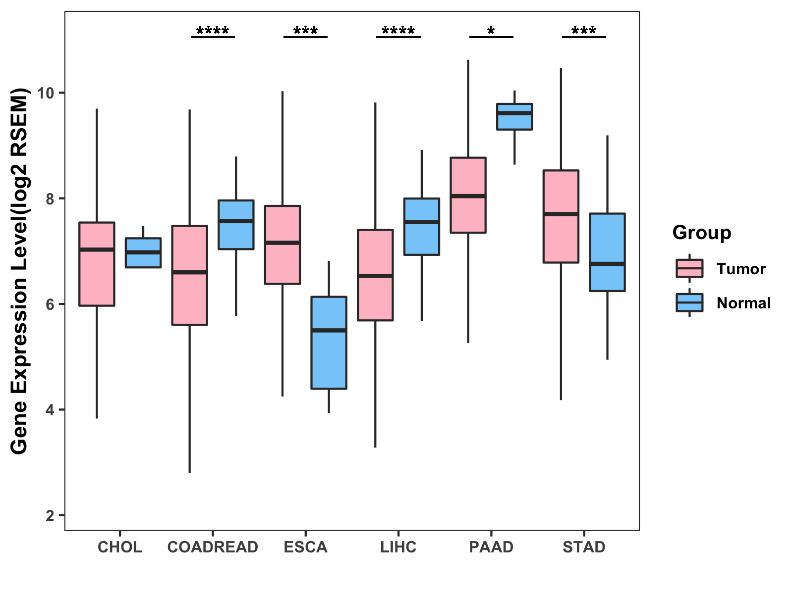( * : 0.01-0.05 , ** : 0.005-0.01 , *** : 0.0001-0.005 , **** : < 0.0001 ) |