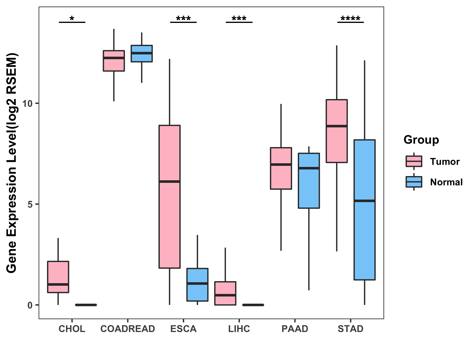 ( * : 0.01-0.05 , ** : 0.005-0.01 , *** : 0.0001-0.005 , **** : < 0.0001 ) |