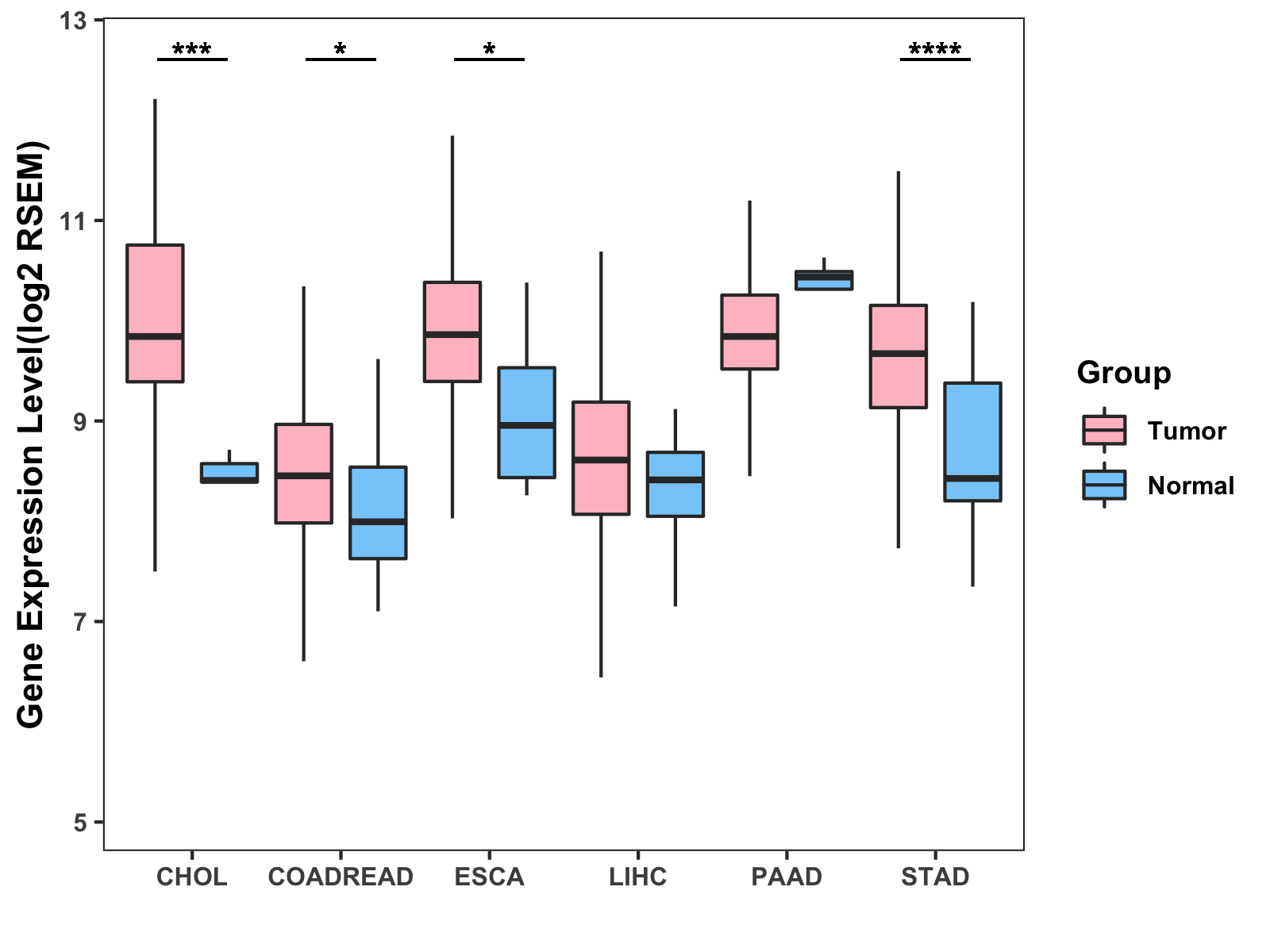 ( * : 0.01-0.05 , ** : 0.005-0.01 , *** : 0.0001-0.005 , **** : < 0.0001 ) |