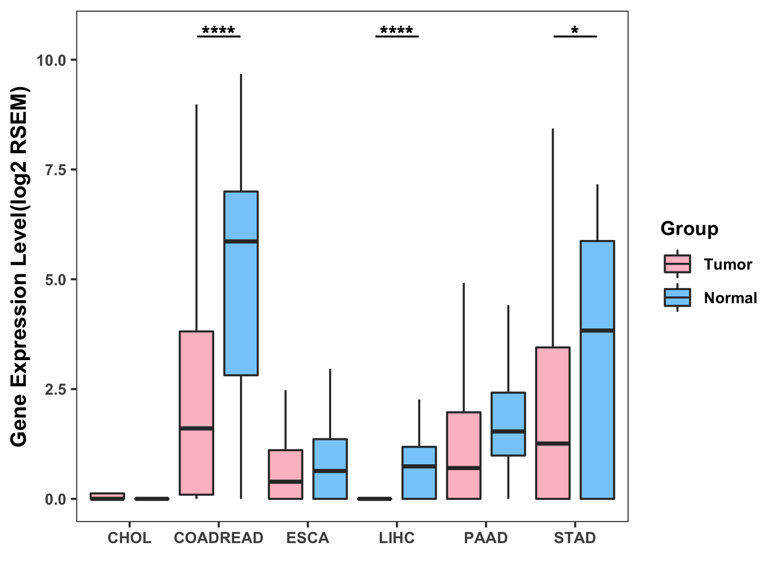 ( * : 0.01-0.05 , ** : 0.005-0.01 , *** : 0.0001-0.005 , **** : < 0.0001 ) |