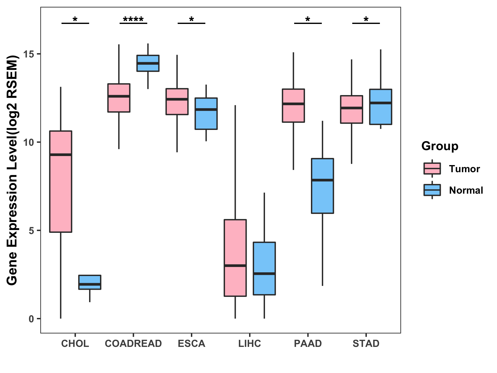 ( * : 0.01-0.05 , ** : 0.005-0.01 , *** : 0.0001-0.005 , **** : < 0.0001 ) |
