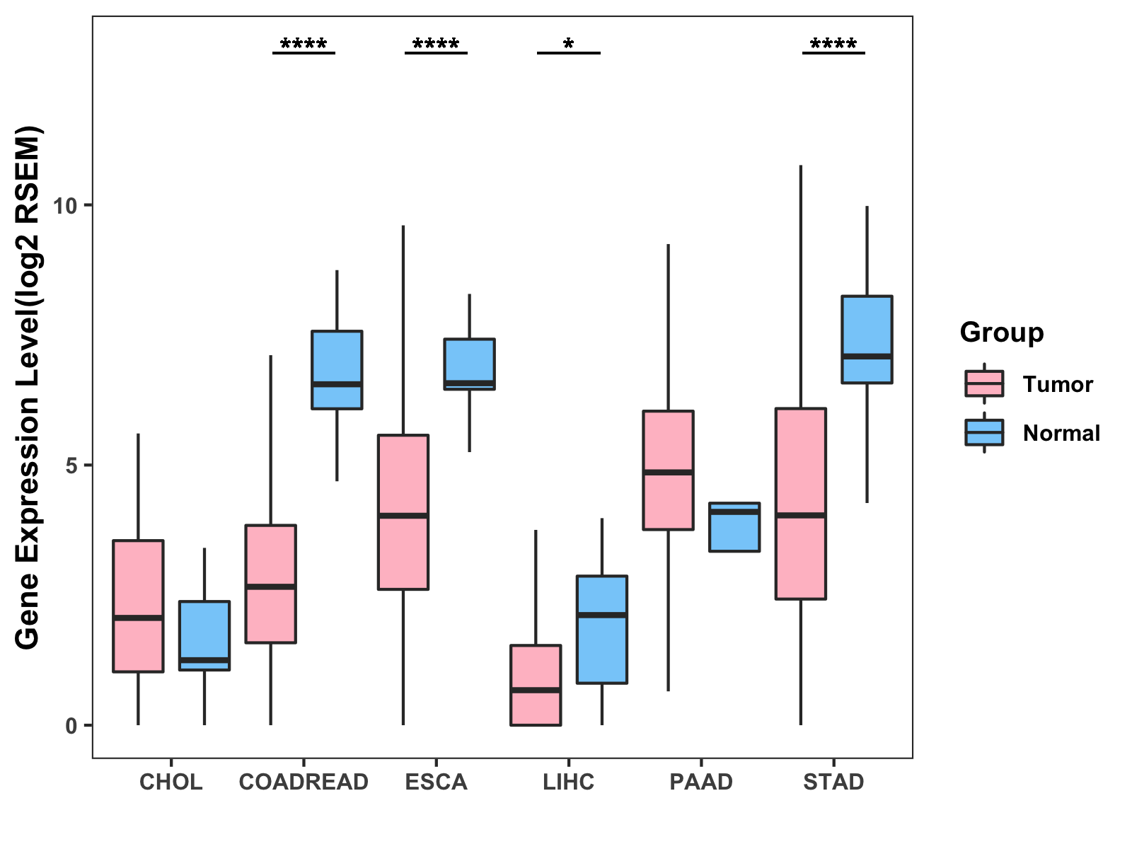 ( * : 0.01-0.05 , ** : 0.005-0.01 , *** : 0.0001-0.005 , **** : < 0.0001 ) |