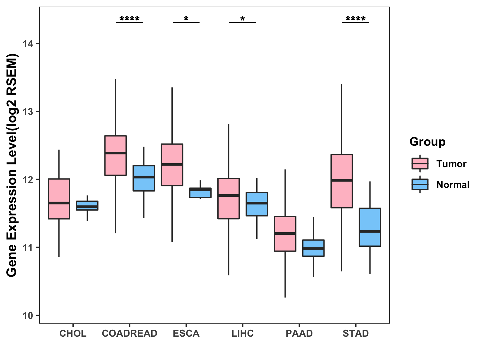 ( * : 0.01-0.05 , ** : 0.005-0.01 , *** : 0.0001-0.005 , **** : < 0.0001 ) |