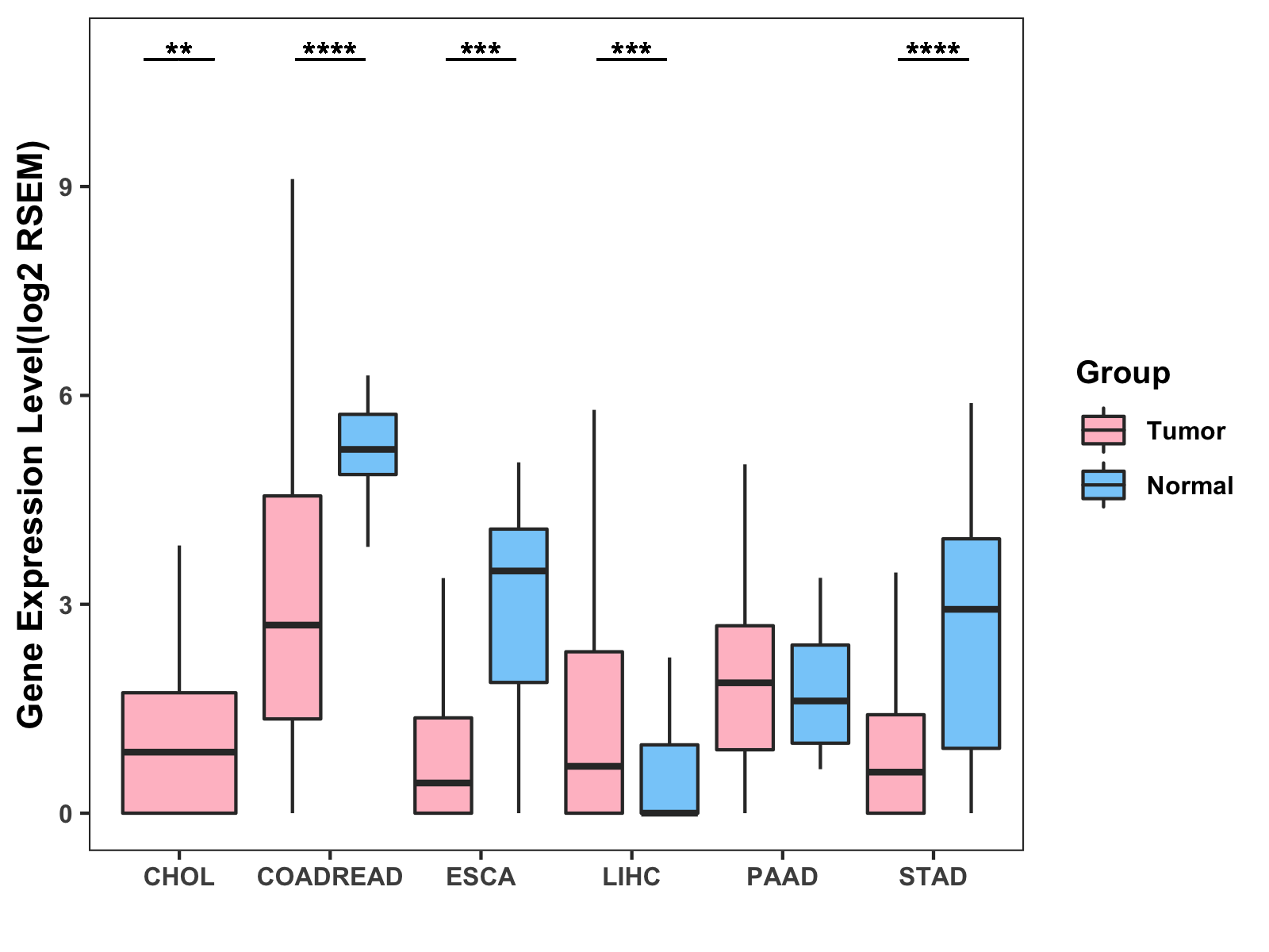( * : 0.01-0.05 , ** : 0.005-0.01 , *** : 0.0001-0.005 , **** : < 0.0001 ) |