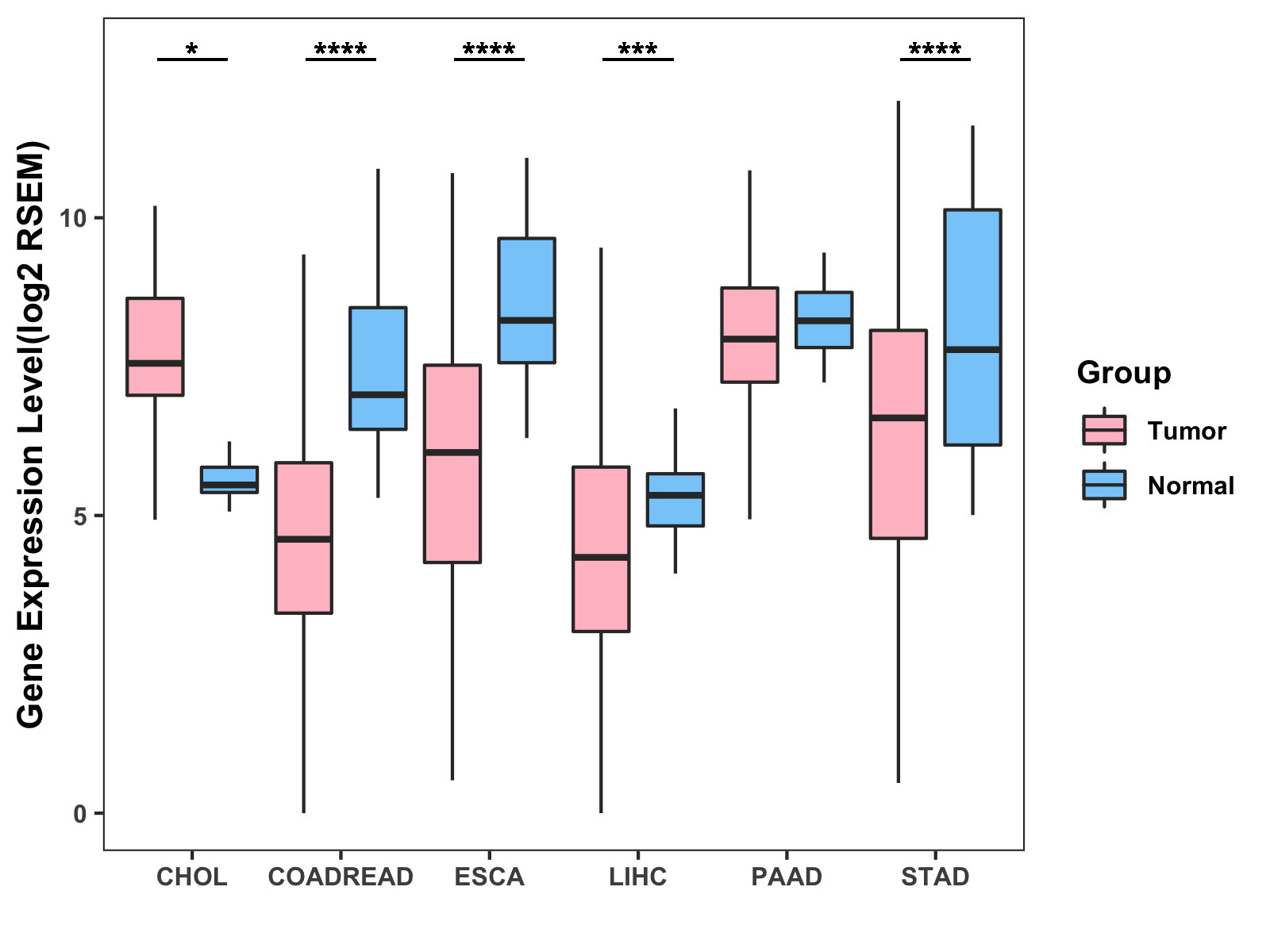 ( * : 0.01-0.05 , ** : 0.005-0.01 , *** : 0.0001-0.005 , **** : < 0.0001 ) |