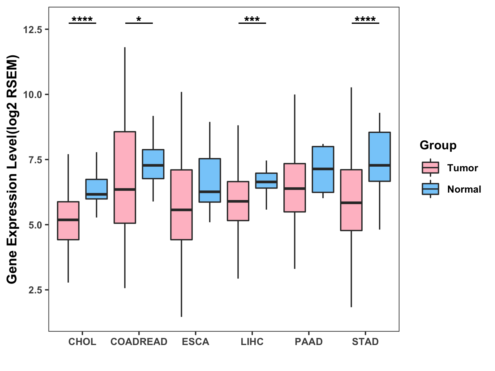 ( * : 0.01-0.05 , ** : 0.005-0.01 , *** : 0.0001-0.005 , **** : < 0.0001 ) |