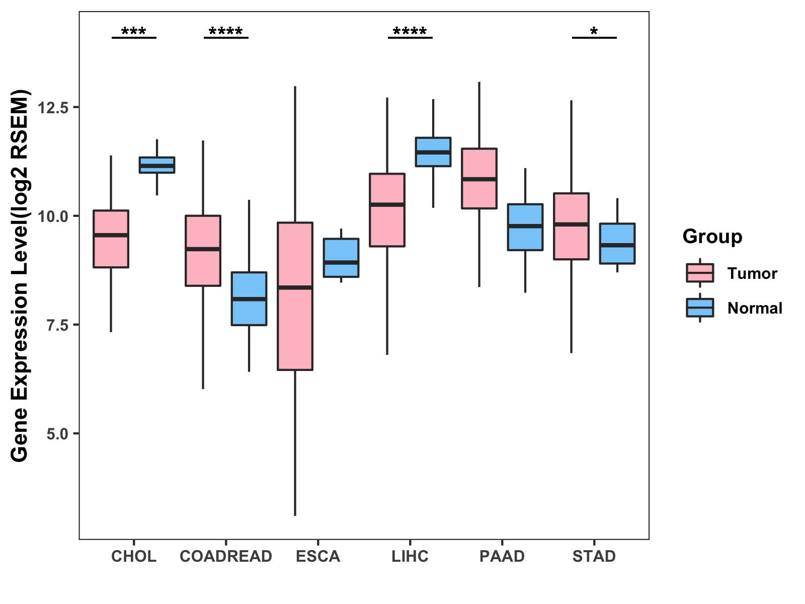 ( * : 0.01-0.05 , ** : 0.005-0.01 , *** : 0.0001-0.005 , **** : < 0.0001 ) |