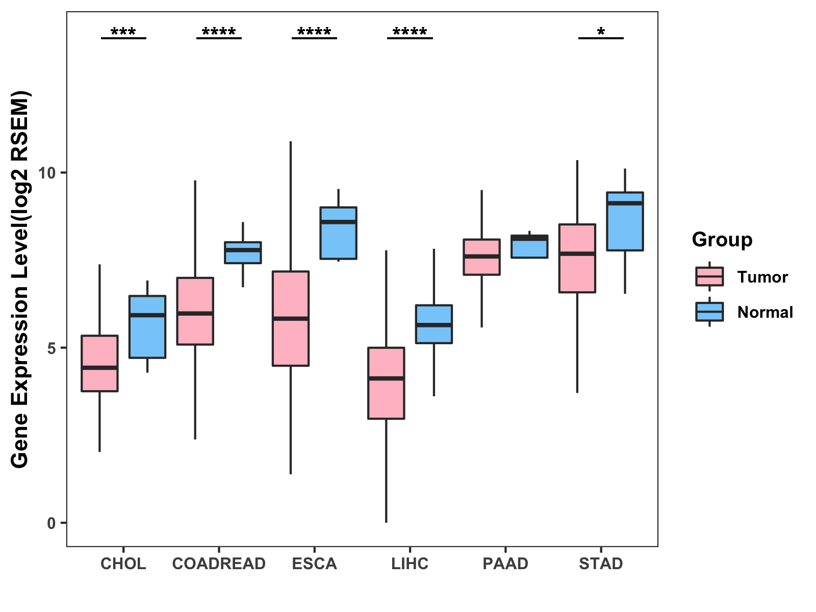 ( * : 0.01-0.05 , ** : 0.005-0.01 , *** : 0.0001-0.005 , **** : < 0.0001 ) |
