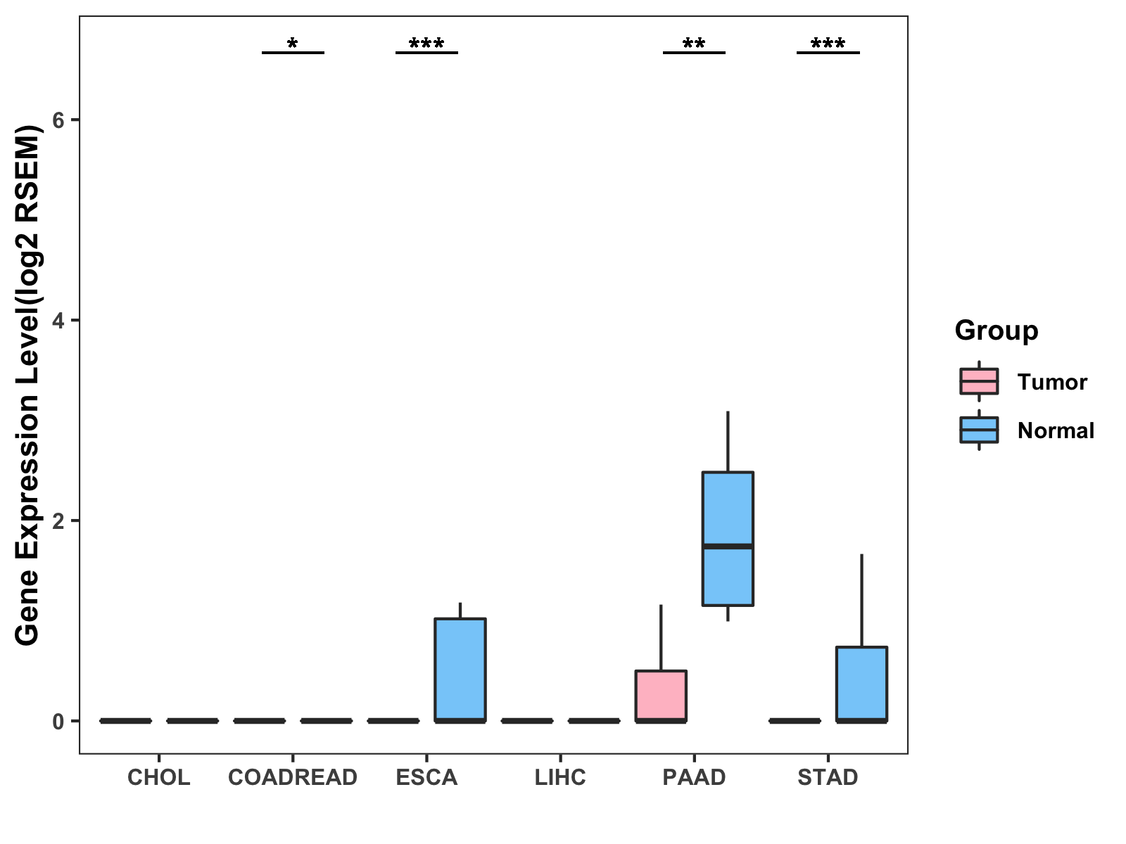 | Boxplot of Pancreatic Cancer | Boxplot of All Gastrointestinal Cancer