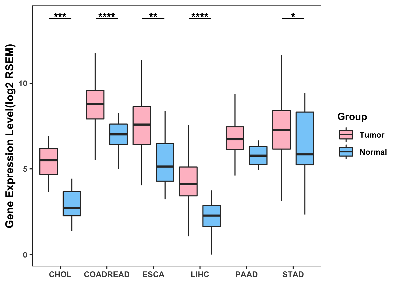( * : 0.01-0.05 , ** : 0.005-0.01 , *** : 0.0001-0.005 , **** : < 0.0001 ) |