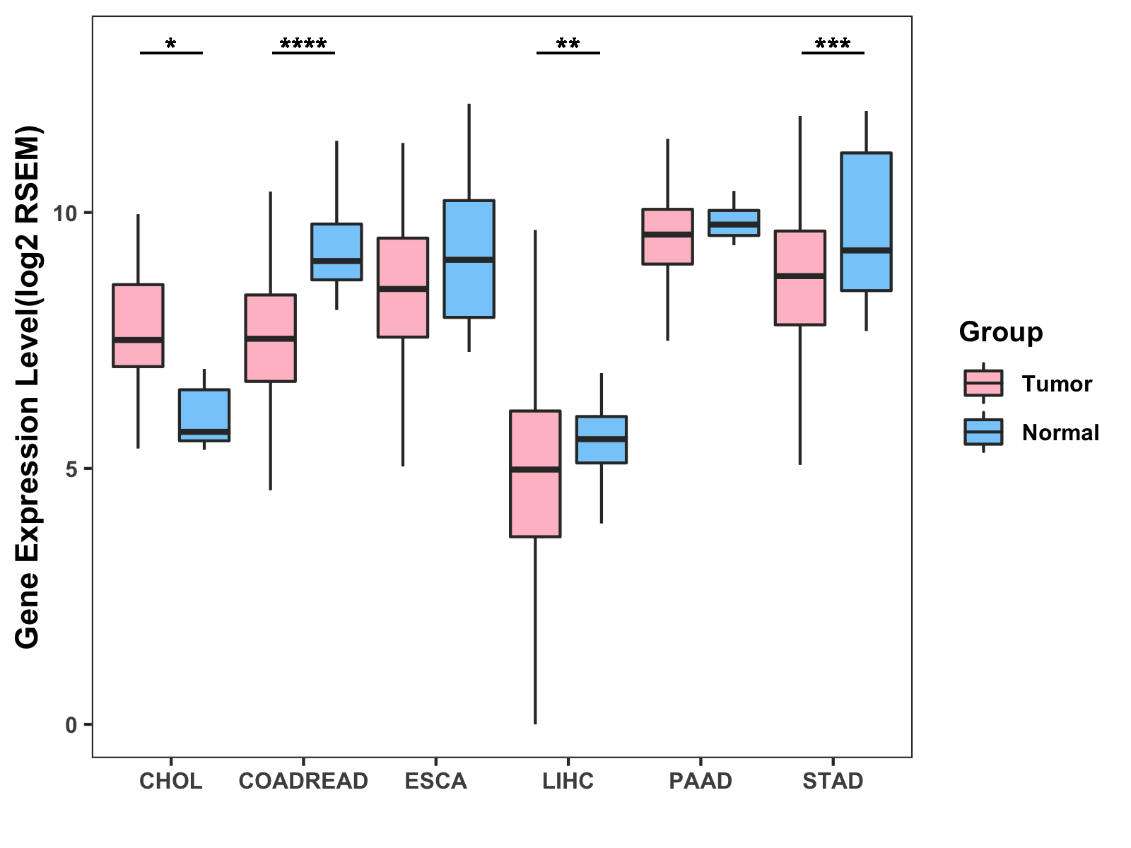 ( * : 0.01-0.05 , ** : 0.005-0.01 , *** : 0.0001-0.005 , **** : < 0.0001 ) |