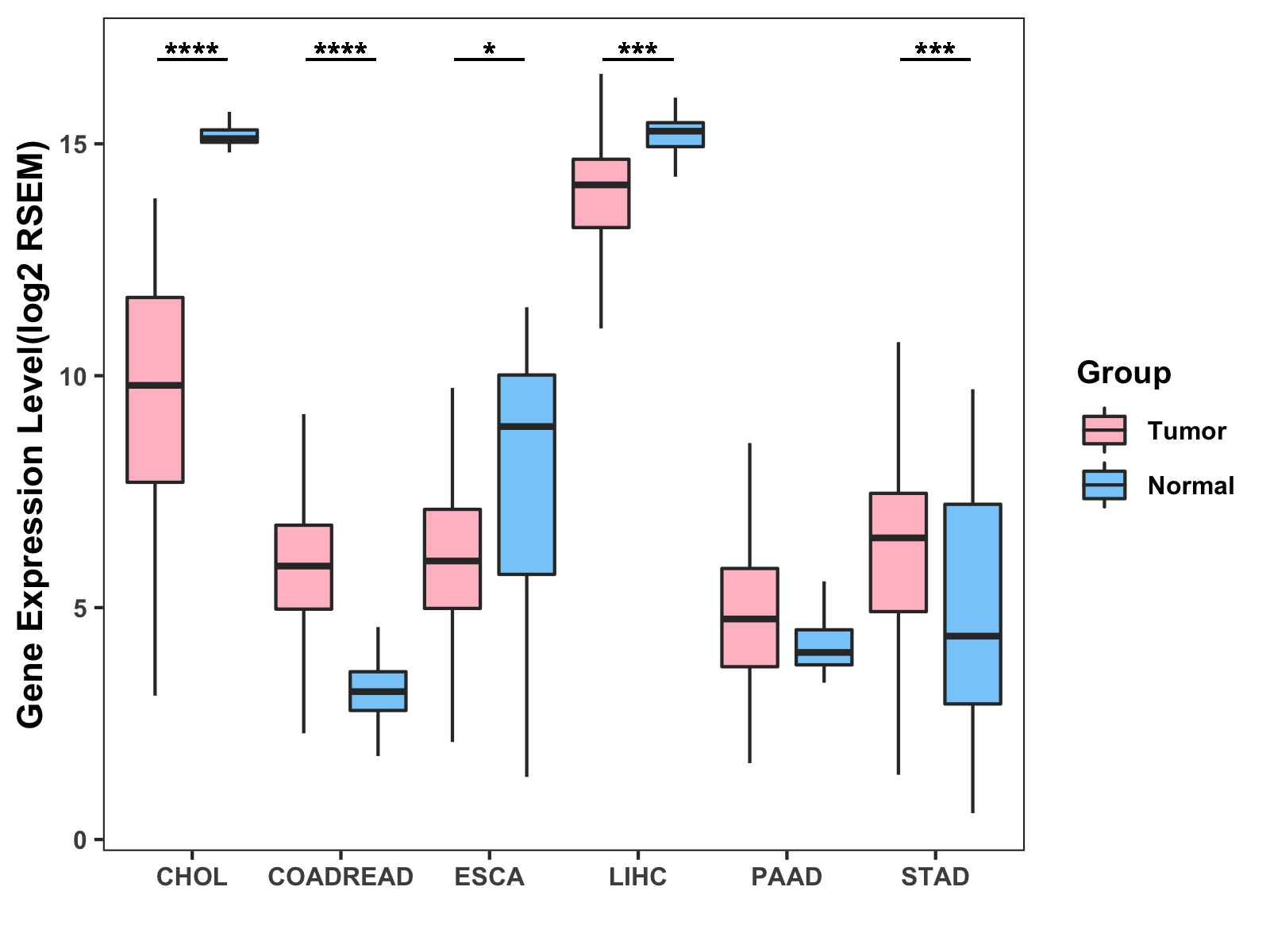 ( * : 0.01-0.05 , ** : 0.005-0.01 , *** : 0.0001-0.005 , **** : < 0.0001 ) |