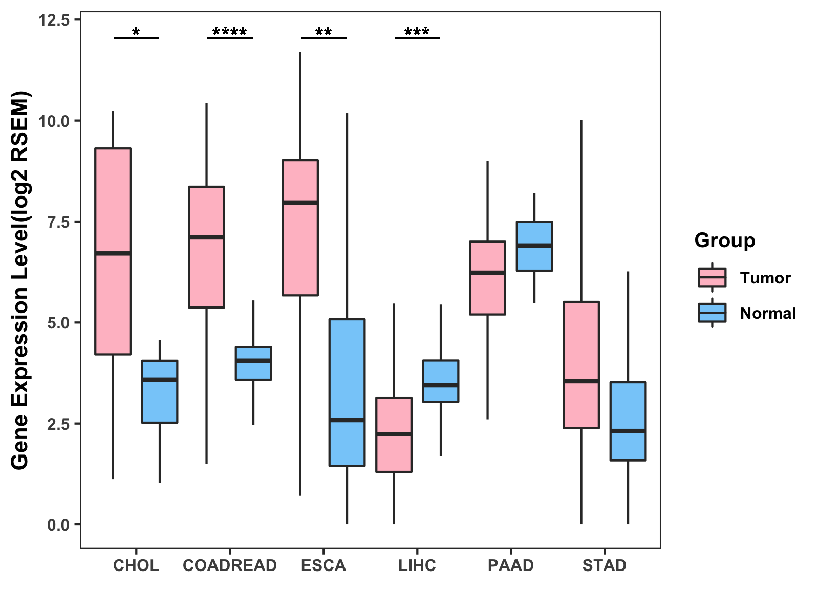 ( * : 0.01-0.05 , ** : 0.005-0.01 , *** : 0.0001-0.005 , **** : < 0.0001 ) |