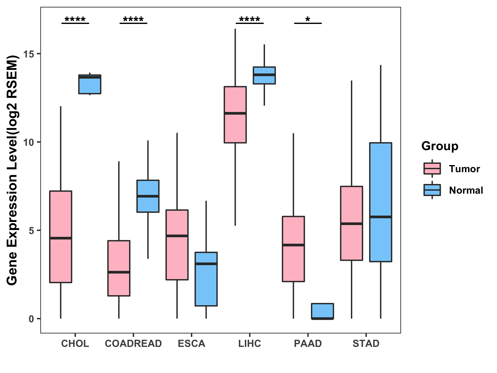 ( * : 0.01-0.05 , ** : 0.005-0.01 , *** : 0.0001-0.005 , **** : < 0.0001 ) |