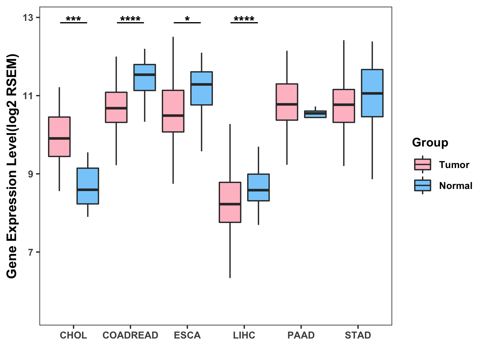 ( * : 0.01-0.05 , ** : 0.005-0.01 , *** : 0.0001-0.005 , **** : < 0.0001 ) |