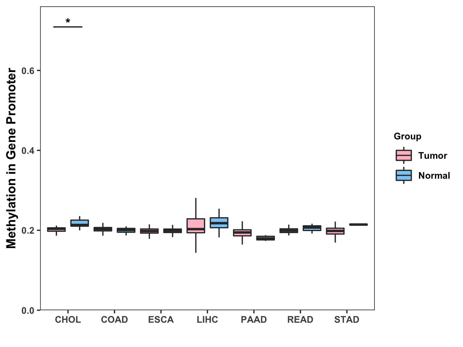 Boxplot of All Gastrointestinal Cancer ( * : 0.01-0.05 , ** : 0.005-0.01 , *** : 0.0001-0.005 , **** : < 0.0001 ) |