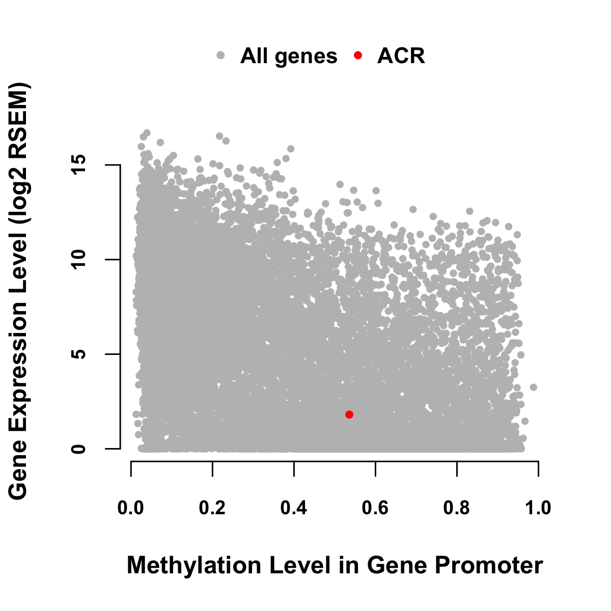 Expression-Methylation Scatter Plot in Colon Cancer Expression-Methylation Scatter Plot in Rectum Cancer