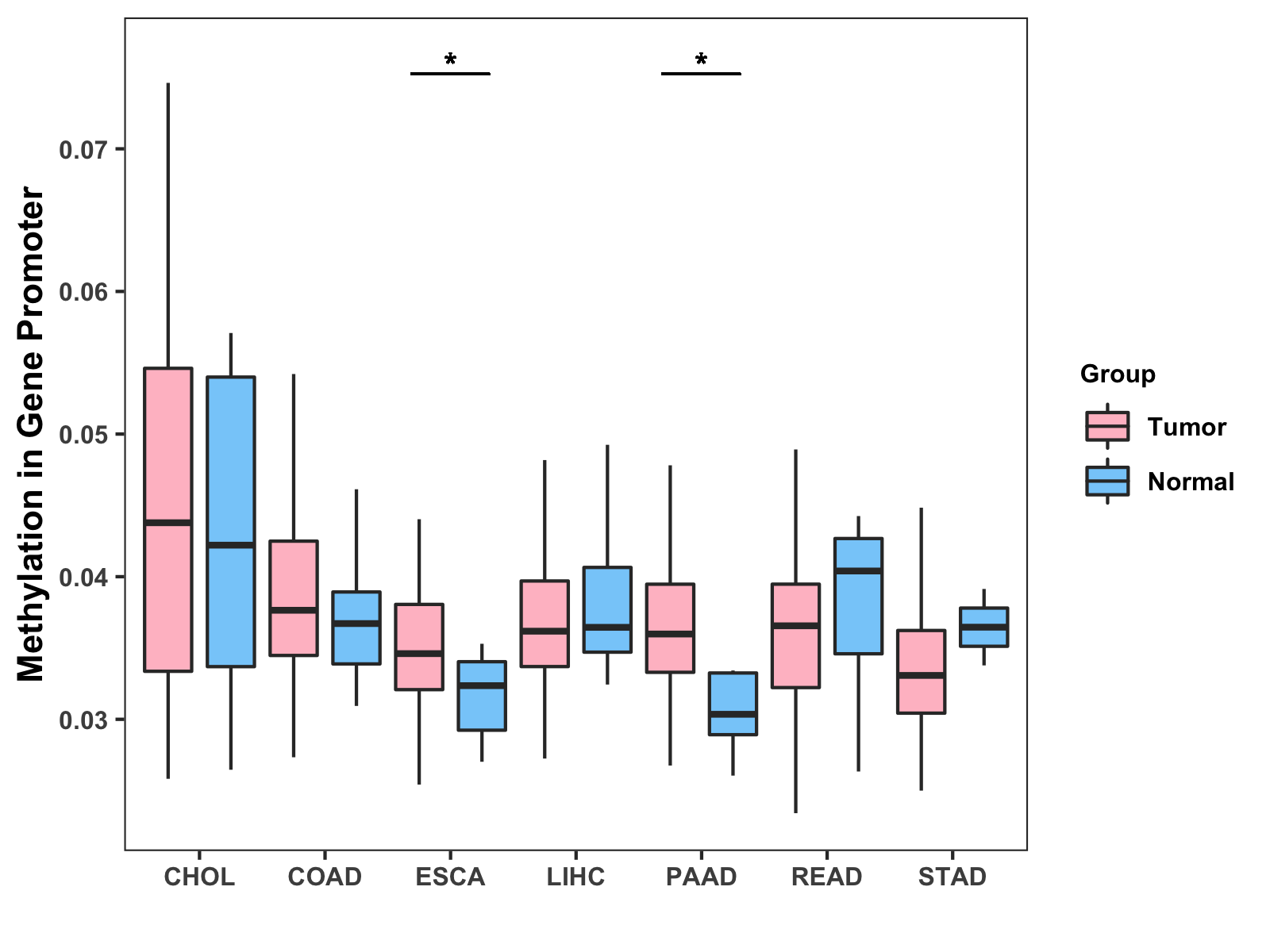 Methylation Level in Colon Cancer MODERATE Methylation Level in Rectum Cancer MODERATE