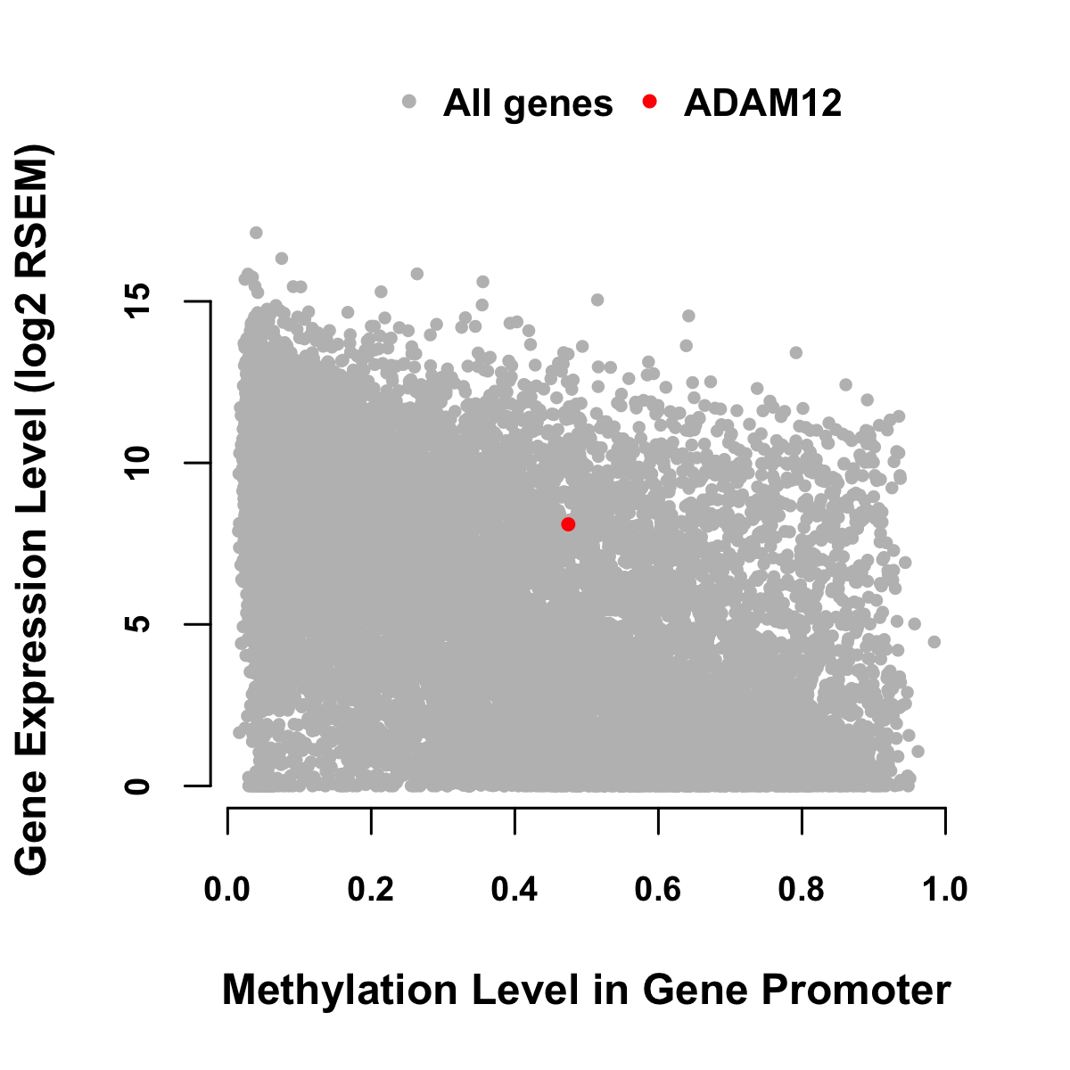 | Box Plot in Stomach Cancer | Expression-Methylation Scatter Plot in Stomach Cancer |
