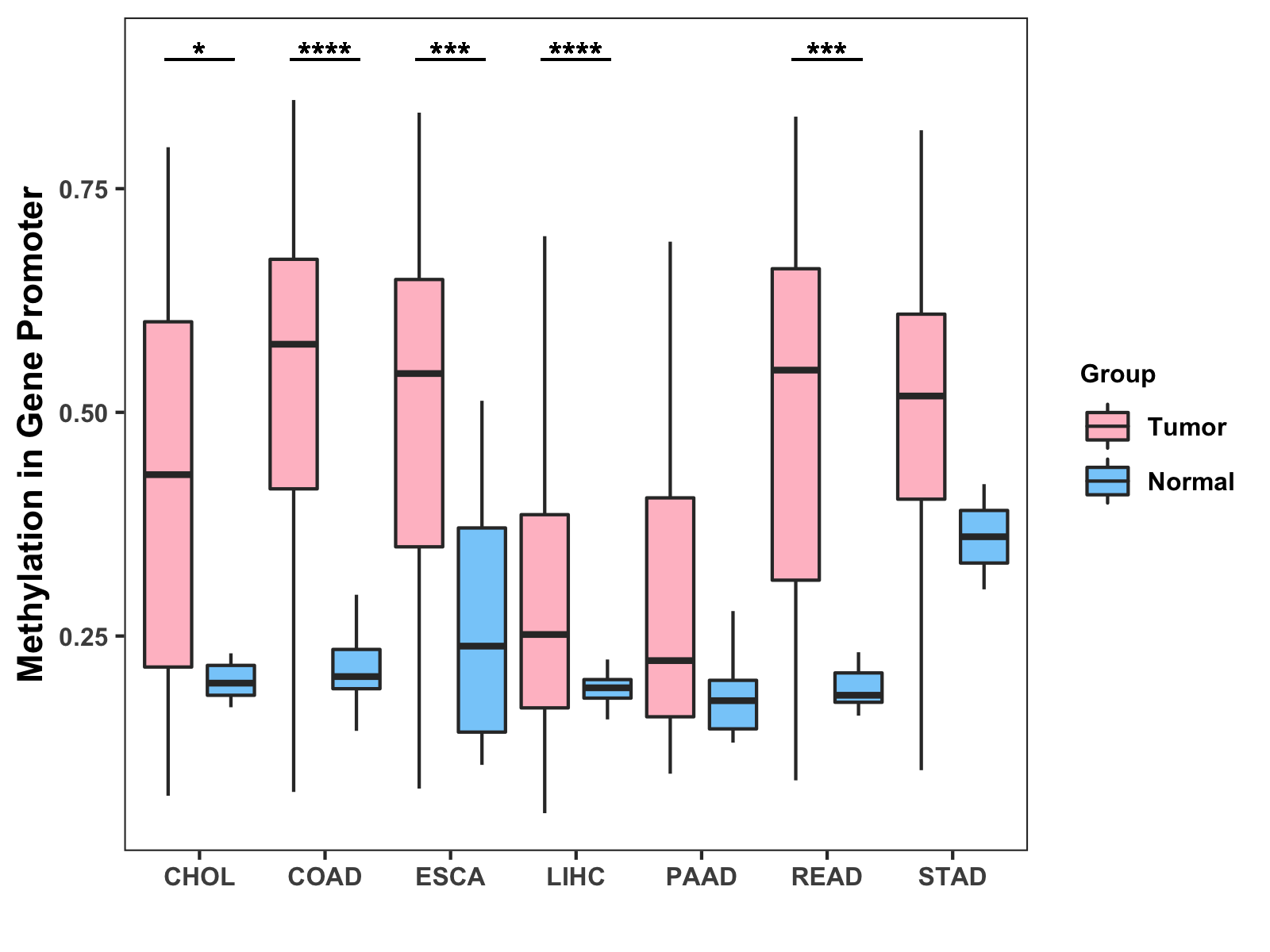 Methylation Level in Colon Cancer HIGH Methylation Level in Rectum Cancer HIGH