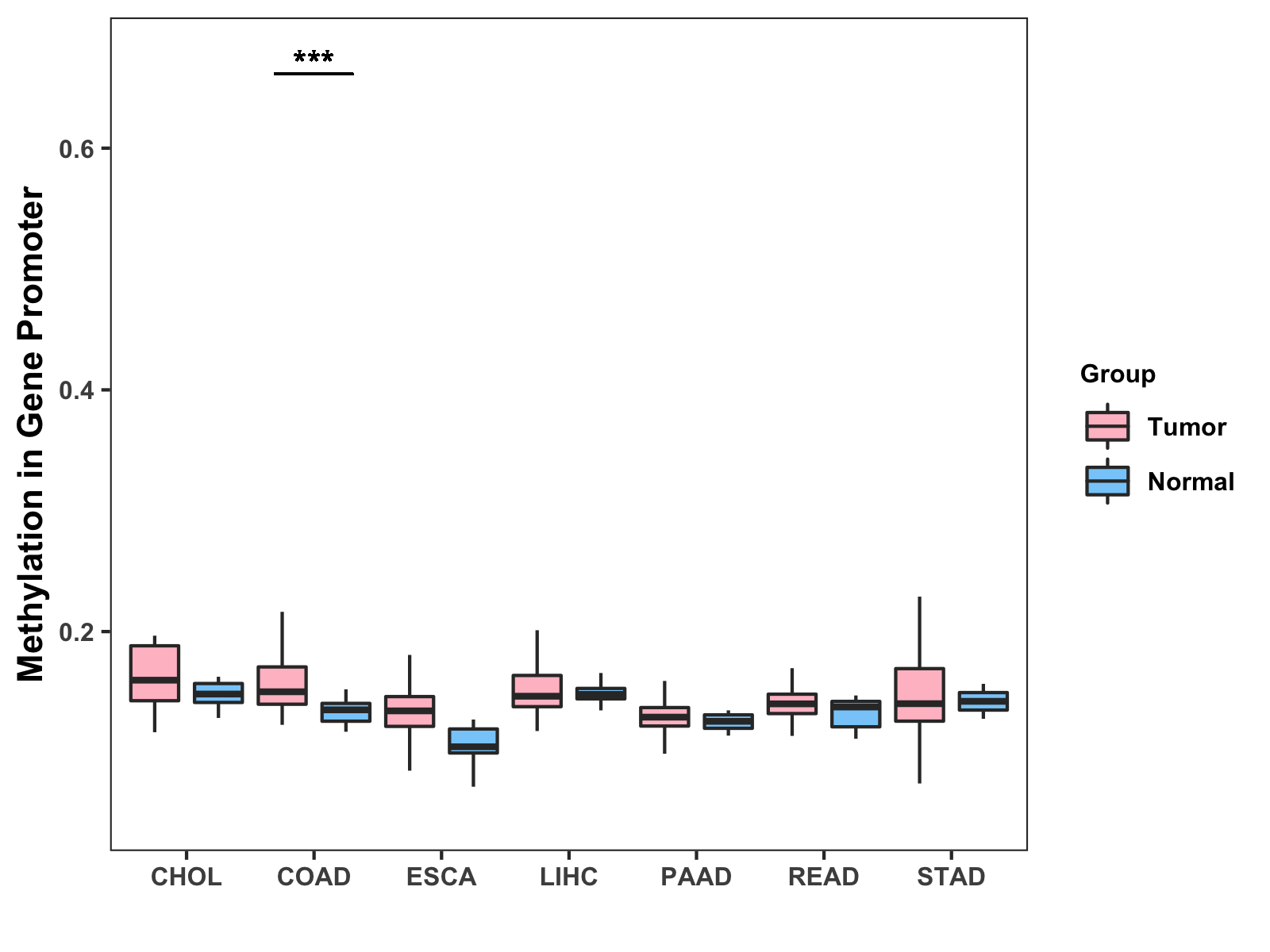 Boxplot of All Gastrointestinal Cancer ( * : 0.01-0.05 , ** : 0.005-0.01 , *** : 0.0001-0.005 , **** : < 0.0001 ) |