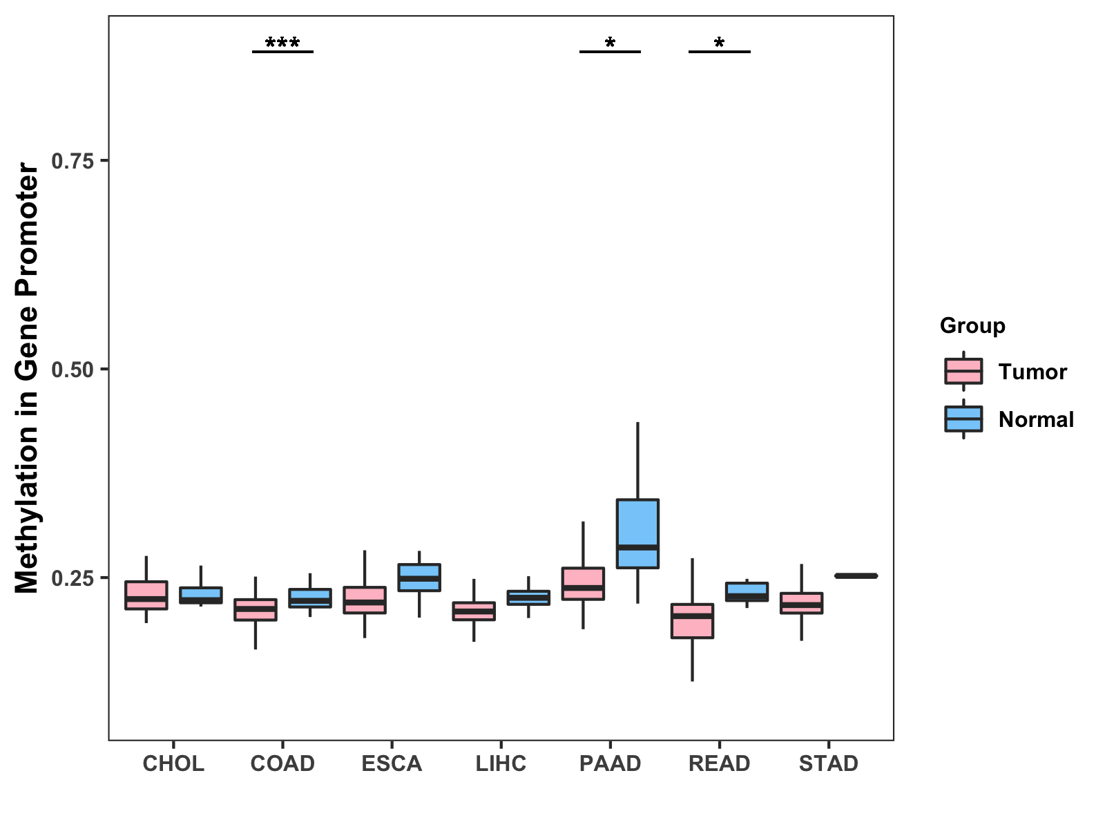 Methylation Level in Colon Cancer MODERATE Methylation Level in Rectum Cancer MODERATE