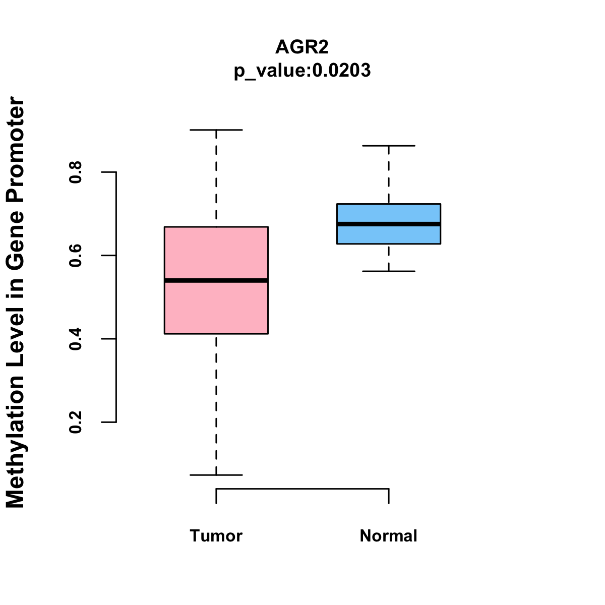 | Box Plot in Pancreatic Cancer | Expression-Methylation Scatter Plot in Pancreatic Cancer |