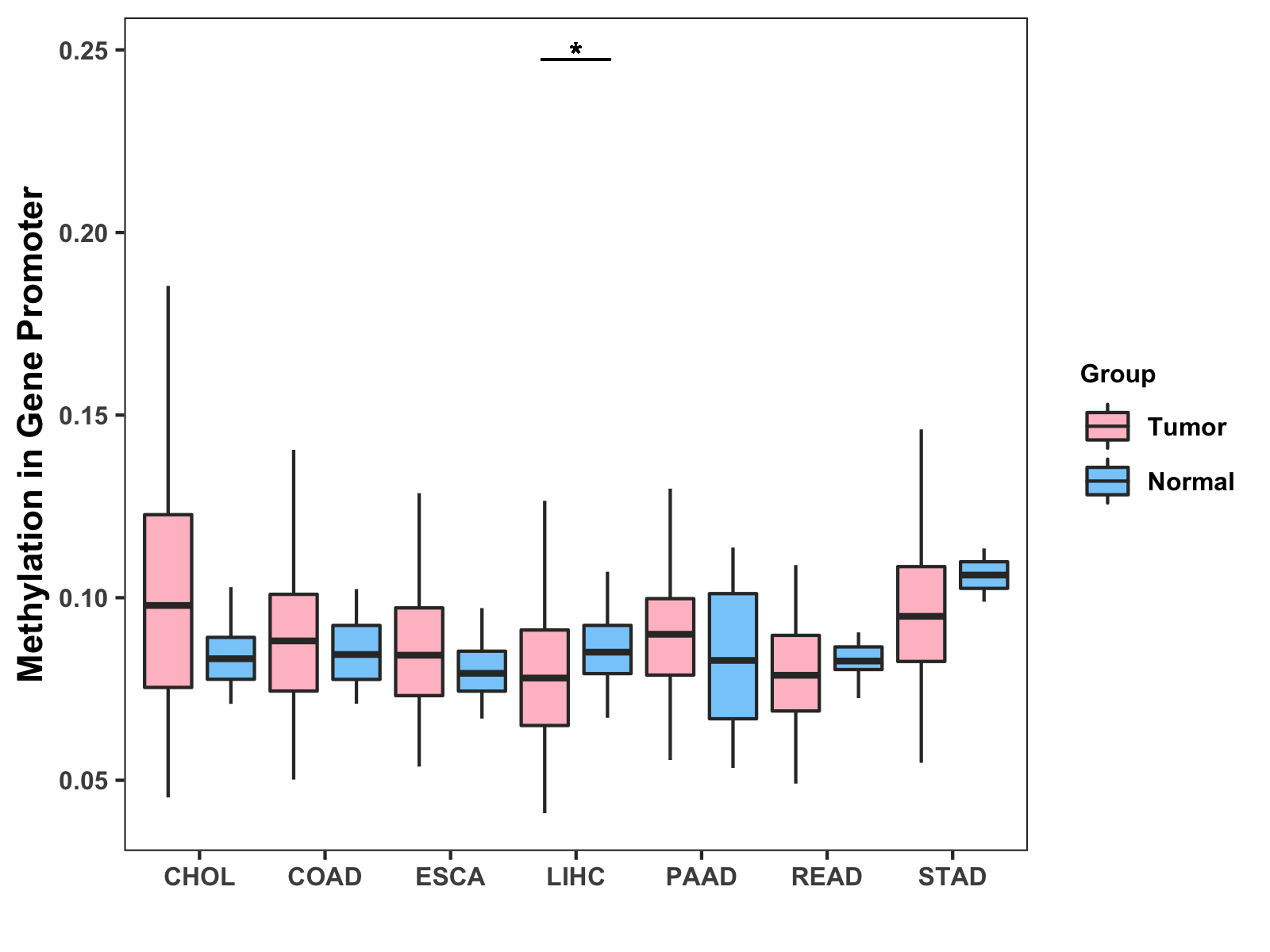 Boxplot of All Gastrointestinal Cancer ( * : 0.01-0.05 , ** : 0.005-0.01 , *** : 0.0001-0.005 , **** : < 0.0001 ) |