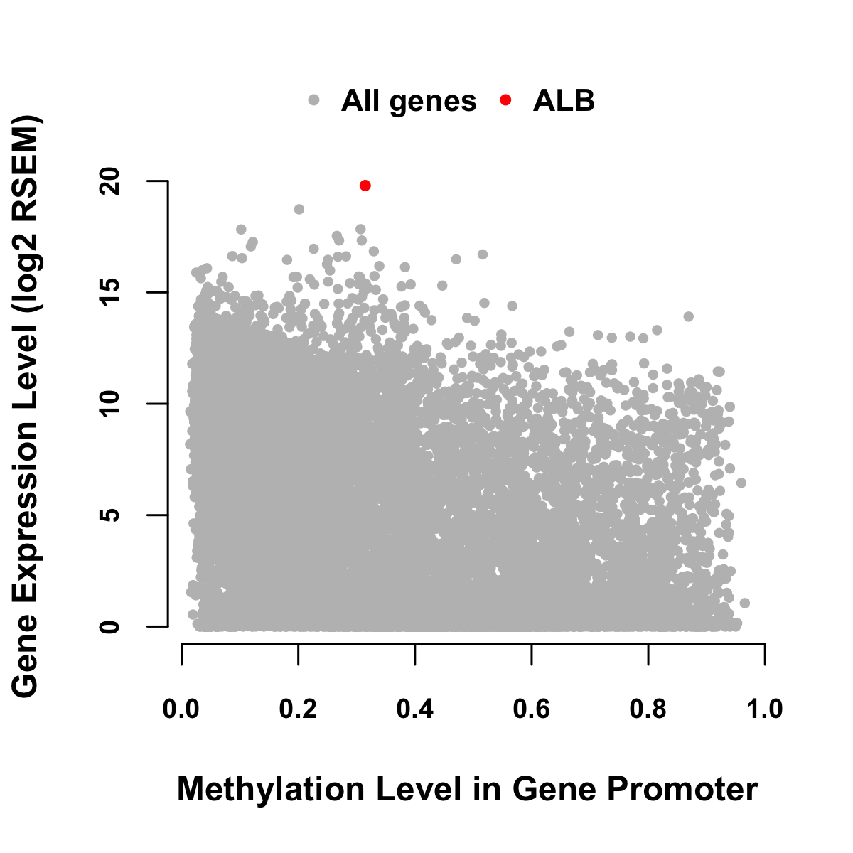 | Box Plot in Liver Cancer | Expression-Methylation Scatter Plot in Liver Cancer |