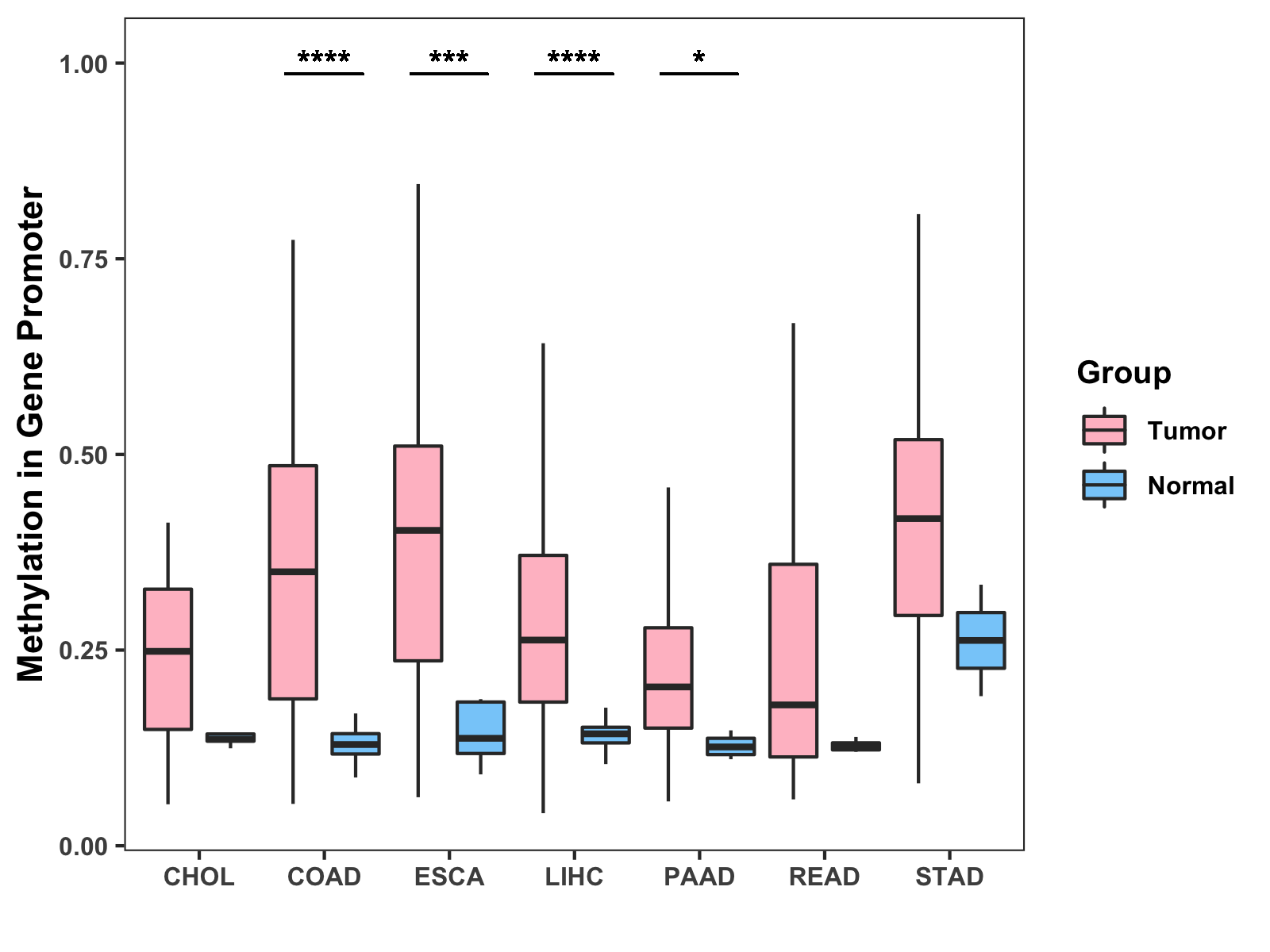 Methylation Level in Colon Cancer HIGH Methylation Level in Rectum Cancer MODERATE