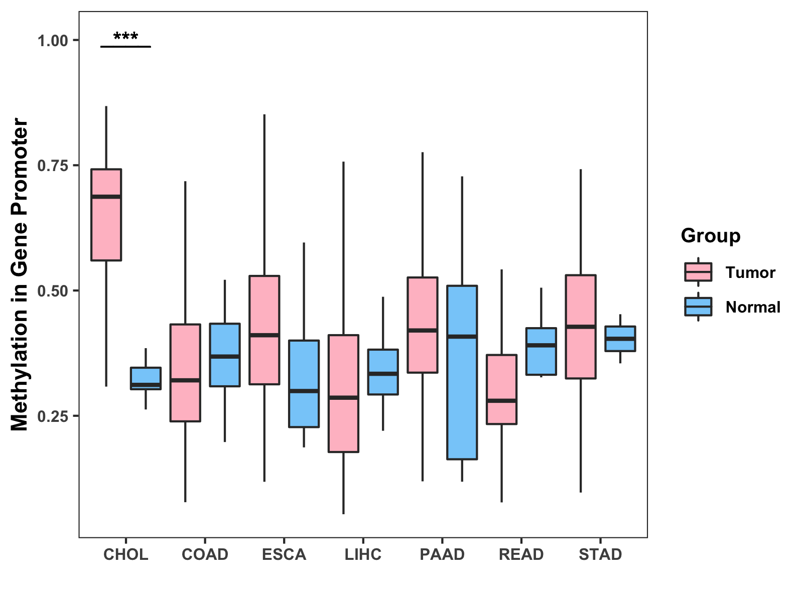 Methylation Level in Colon Cancer MODERATE Methylation Level in Rectum Cancer MODERATE