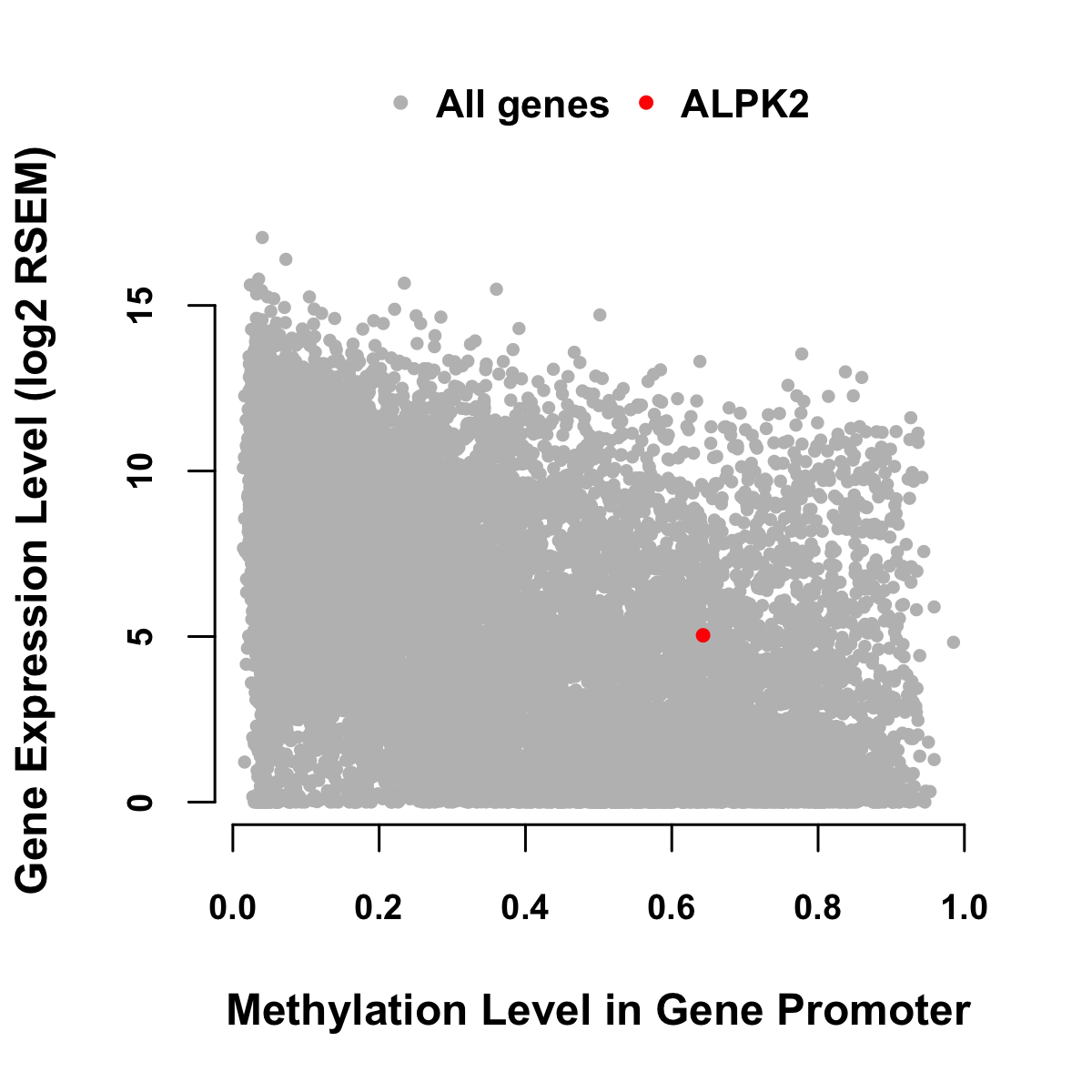 | Box Plot in Esophagus Cancer | Expression-Methylation Scatter Plot in Esophagus Cancer |