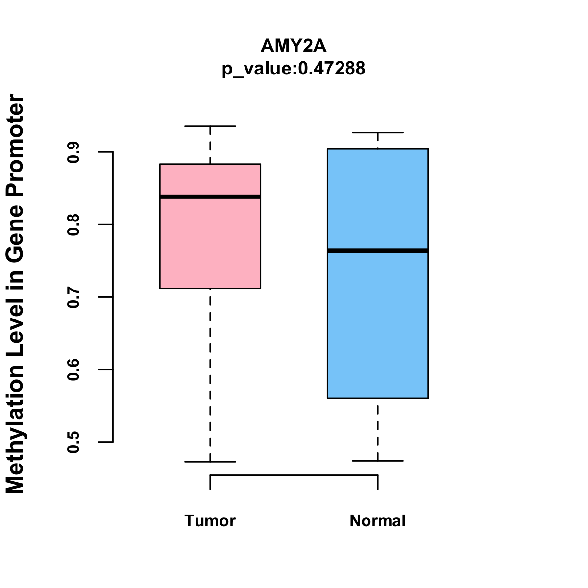 | Box Plot in Pancreatic Cancer | Expression-Methylation Scatter Plot in Pancreatic Cancer |