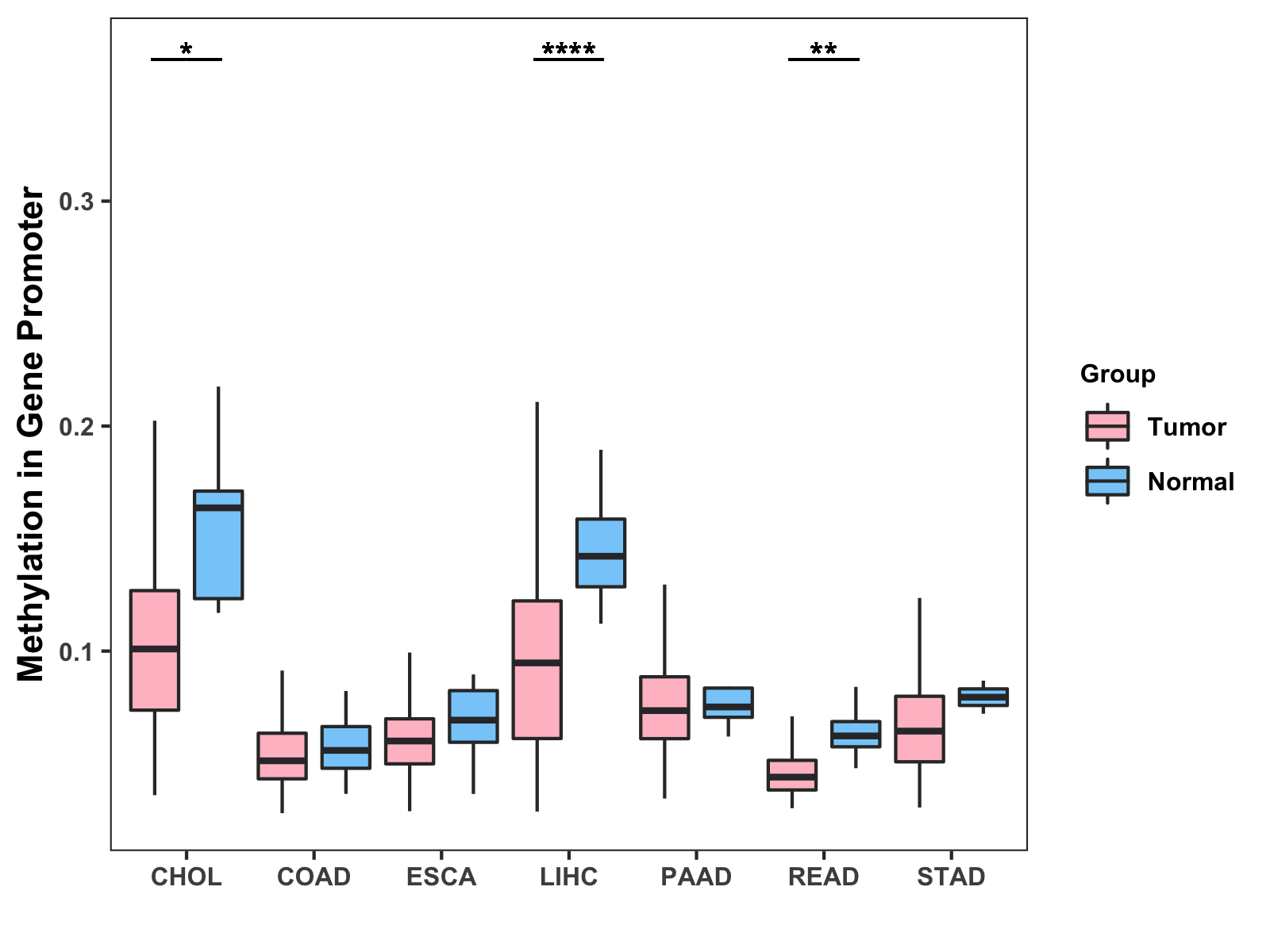 Methylation Level in Colon Cancer MODERATE Methylation Level in Rectum Cancer MODERATE