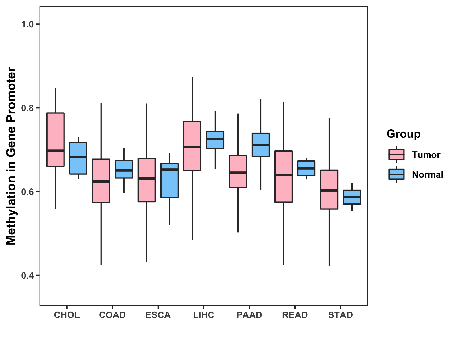 Boxplot of All Gastrointestinal Cancer ( * : 0.01-0.05 , ** : 0.005-0.01 , *** : 0.0001-0.005 , **** : < 0.0001 ) |