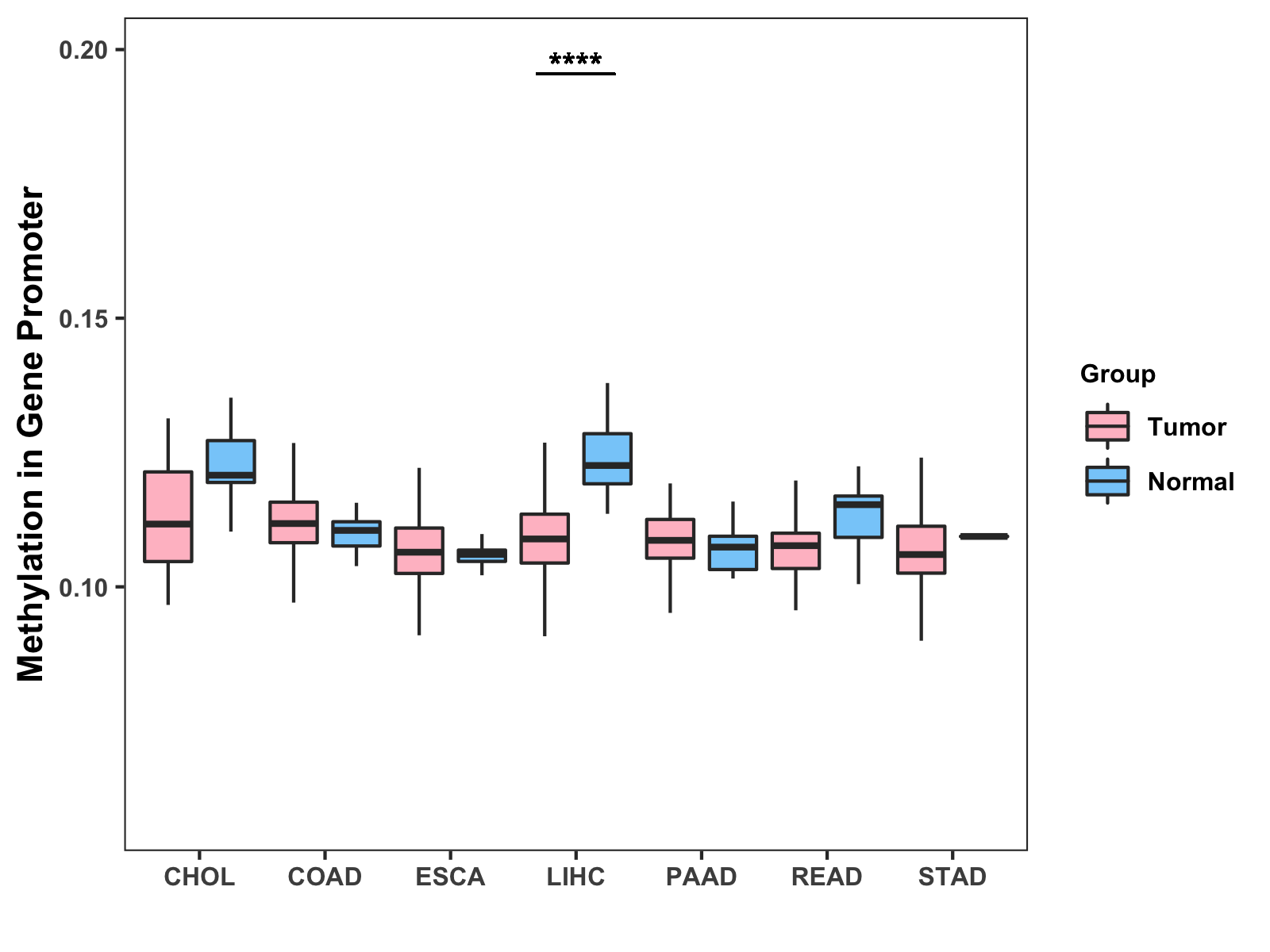 Boxplot of All Gastrointestinal Cancer ( * : 0.01-0.05 , ** : 0.005-0.01 , *** : 0.0001-0.005 , **** : < 0.0001 ) |