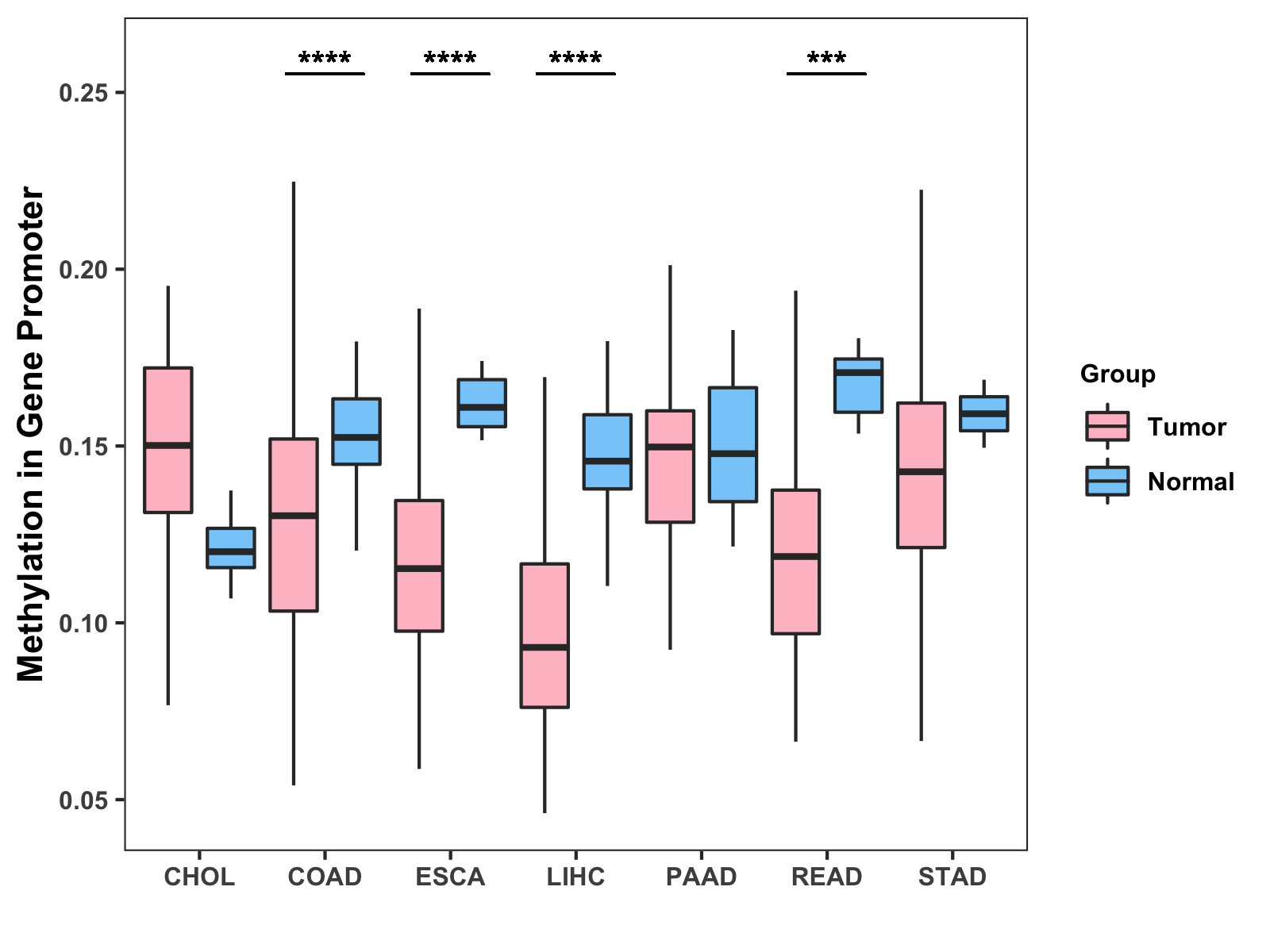 Methylation Level in Colon Cancer MODERATE Methylation Level in Rectum Cancer MODERATE