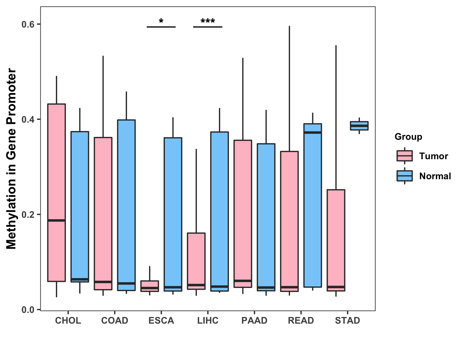 Methylation Level in Colon Cancer MODERATE Methylation Level in Rectum Cancer MODERATE
