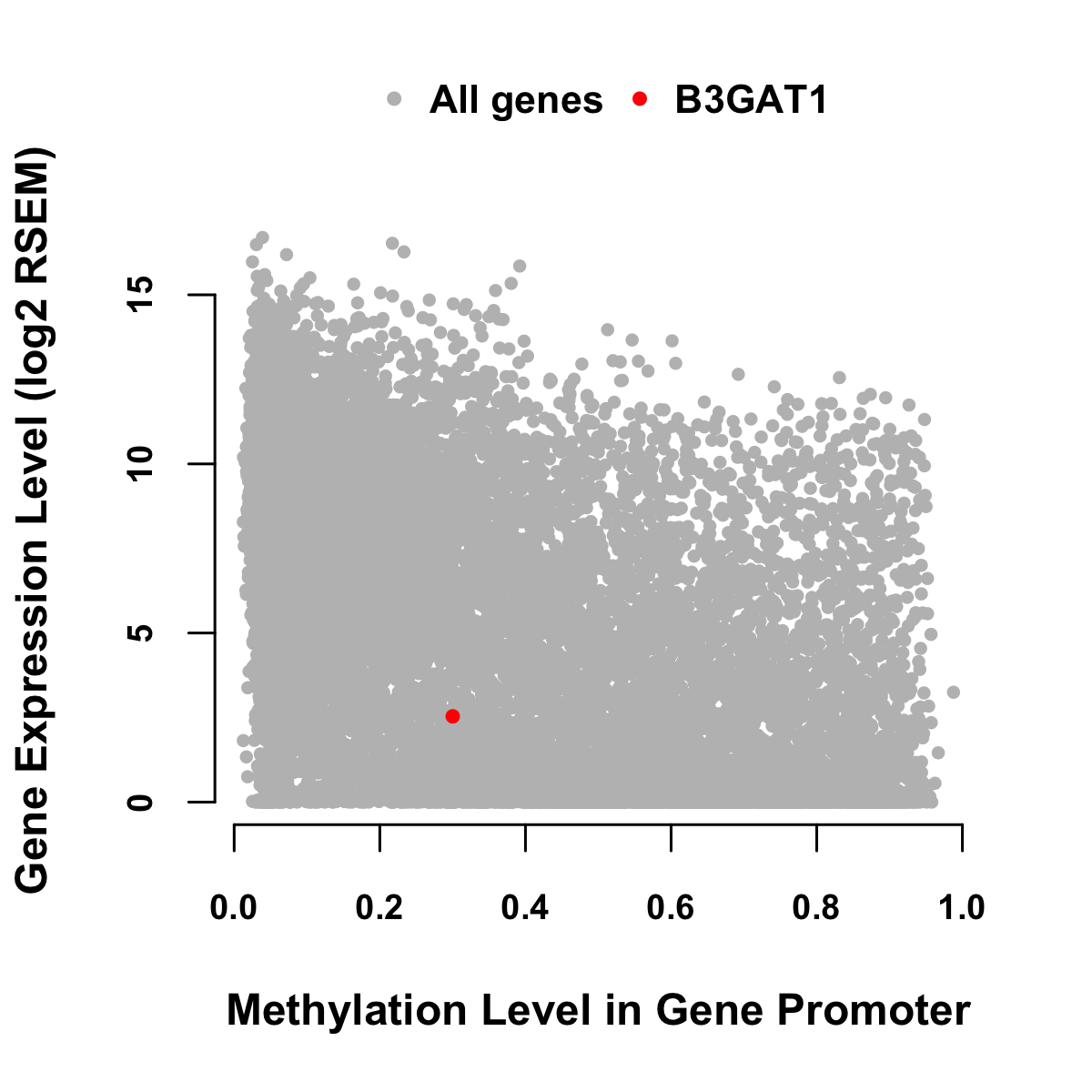 Expression-Methylation Scatter Plot in Colon Cancer Expression-Methylation Scatter Plot in Rectum Cancer