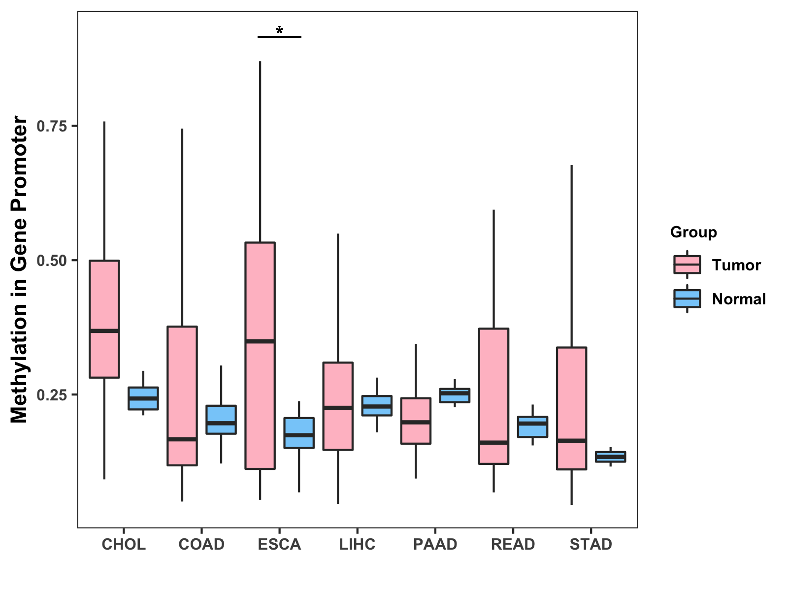 Methylation Level in Colon Cancer MODERATE Methylation Level in Rectum Cancer MODERATE