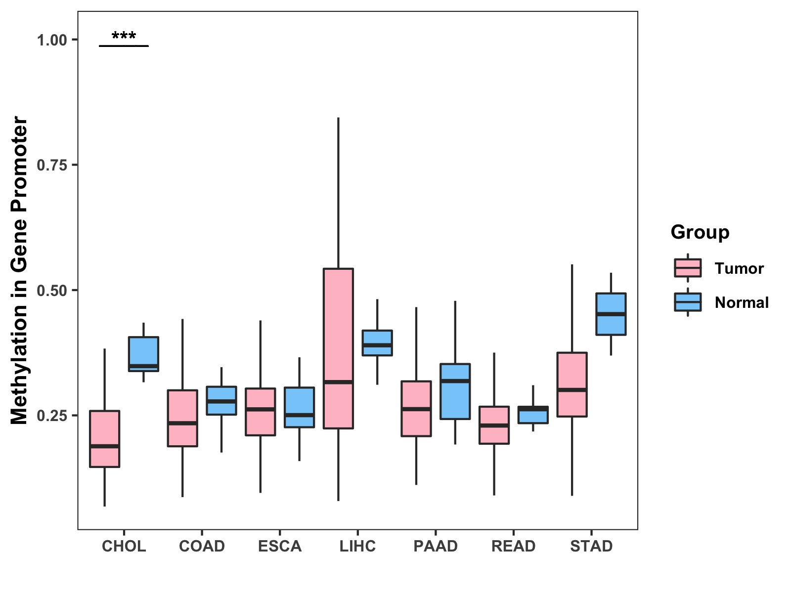 Boxplot of All Gastrointestinal Cancer ( * : 0.01-0.05 , ** : 0.005-0.01 , *** : 0.0001-0.005 , **** : < 0.0001 ) |
