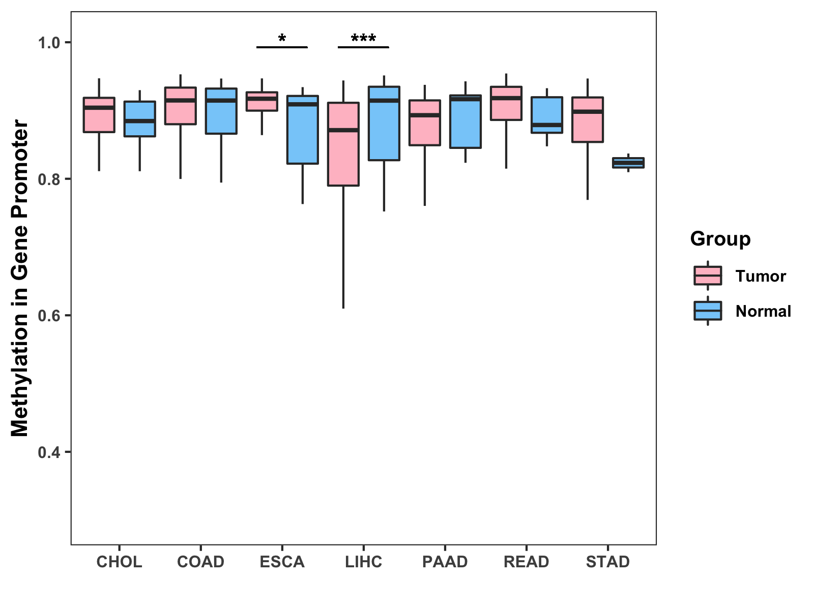 Boxplot of All Gastrointestinal Cancer ( * : 0.01-0.05 , ** : 0.005-0.01 , *** : 0.0001-0.005 , **** : < 0.0001 ) |