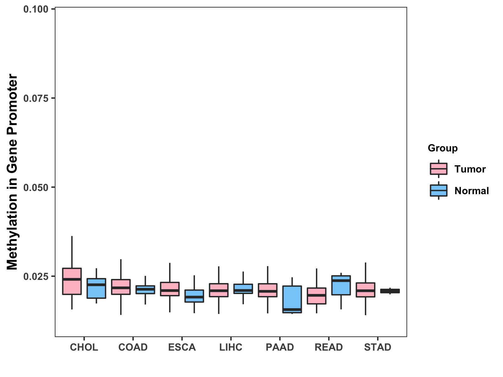 Methylation Level in Colon Cancer MODERATE Methylation Level in Rectum Cancer MODERATE